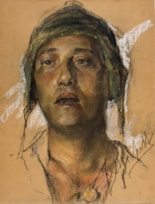 This striking pastel study may be related to one of the seated onlookers in Francesco Paolo Michetti’s very large painting of The Daughter of Jorio of 1895, in the Palazzo della Provincia in Pescara, of which a somewhat smaller variant is in a private collection. The subject of Michetti’s painting was inspired by a scene he and his friend Gabriele d’Annunzio witnessed in the artist’s home town of Tocco di Casauria one summer day, when a young woman, dressed in red, was chased through the town square by a number of drunken farm labourers.