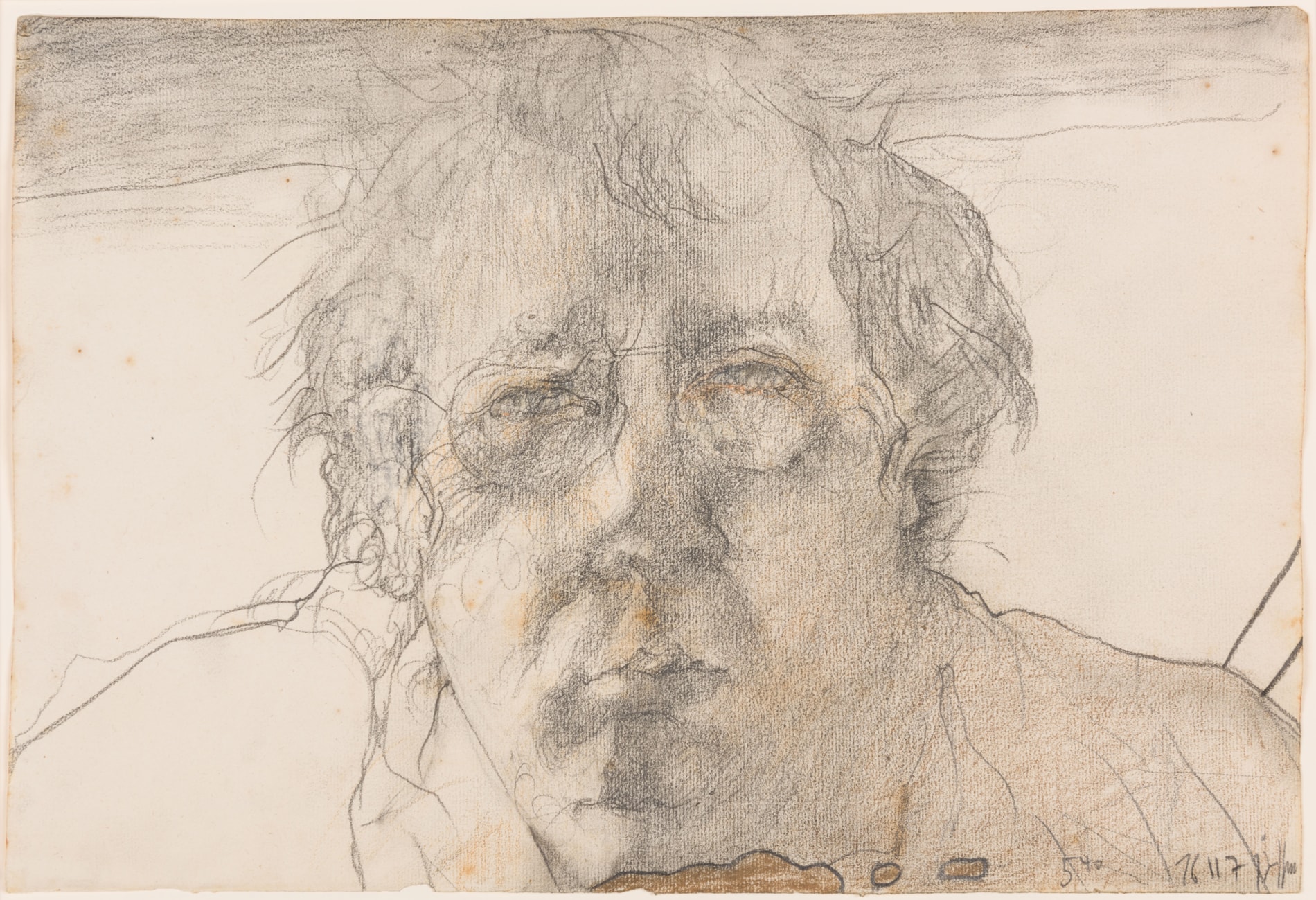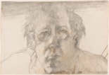 The artist further described the process of making a self-portrait drawing: ‘So I sit down in the morning under the lamp when it is still dark and look across at myself for a moment: the right side of my face in reflection is shadowed. A light-hearted mischievousness does not make me see the most intense darkness a little to the right of the right extremity of the reflection of my face, where the most intense darkness actually is, but in the middle of the same to the right next to the nose, and the top and bottom lips running into the nick of the chin. The left eye strikes me as being quiet, soft and large because its gaze is not fixed on any one object. From this moment on I have to be careful not to destroy this completely ‘Nazarene’ expression, by not looking at my reflection too penetratingly or by not making it grin by remembering a joke. This can only happen as a form of recovery after the fixing of a momentary image. Once this has happened, the two of us can allow ourselves a coffee, a cigarette and a short chat to recover, which affords us considerable pleasure since we have the same needs and pleasures in everything. In the ensuing period the already determined concept is filled in quasi-automatically. From time to time I glance across at him seeking correction or merely confirmation and he glances back to me, showing a sympathetic understanding for my intentions. Thus this tender portrait comes to an end by itself, in this corresponding hour of the morning. I also put a crude signature underneath just of figures indicating the time – like a concluding farewell as an emphatic ending to a successful and clarifying discussion. And then a few seconds afterwards, when I am alone, I laugh out loud: Duped. And the day can begin.’