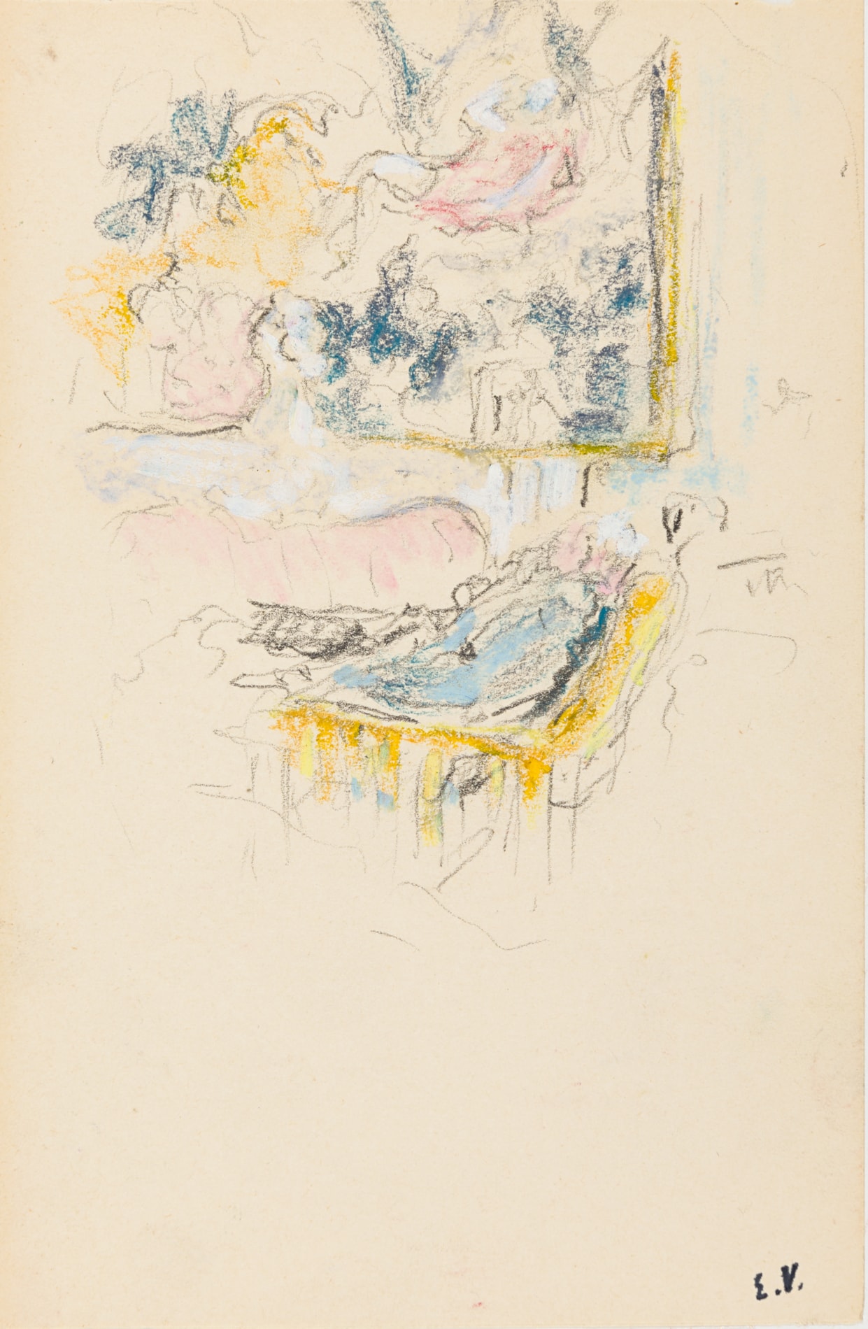 As a modern scholar has noted, ‘Vuillard was in many ways the supreme graphic artist among the Nabis. He drew throughout his life, indeed daily...’ From around 1900 onwards he used mainly pastel for his drawings, and came to master the subtlety and vibrancy of this challenging medium. In one of the first monographs on the artist, the critic and art historian Claude Roger-Marx wrote that, ‘Vuillard often found expression by means of pastels’, and he made more extensive use of the pastel medium than perhaps any French artist since Degas in the previous generation. Pastel was to become an essential part of Vuillard’s working process until the end of his career, and was used for landscape and figure studies, compositional drawings, still life subjects and as preparatory studies for portraits.