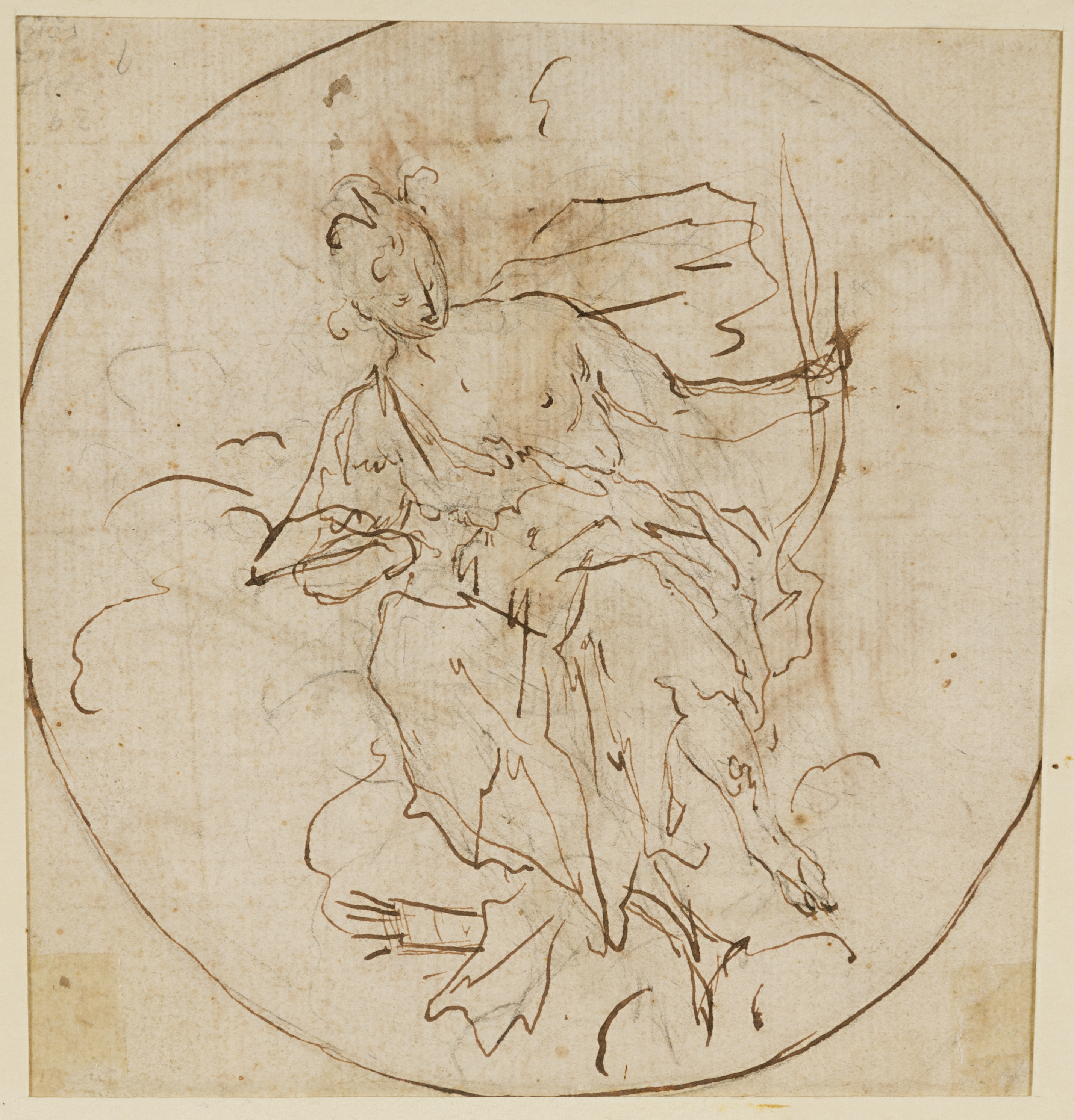Pen and brown ink and brown wash, in an inscribed oval in pen and black chalk.