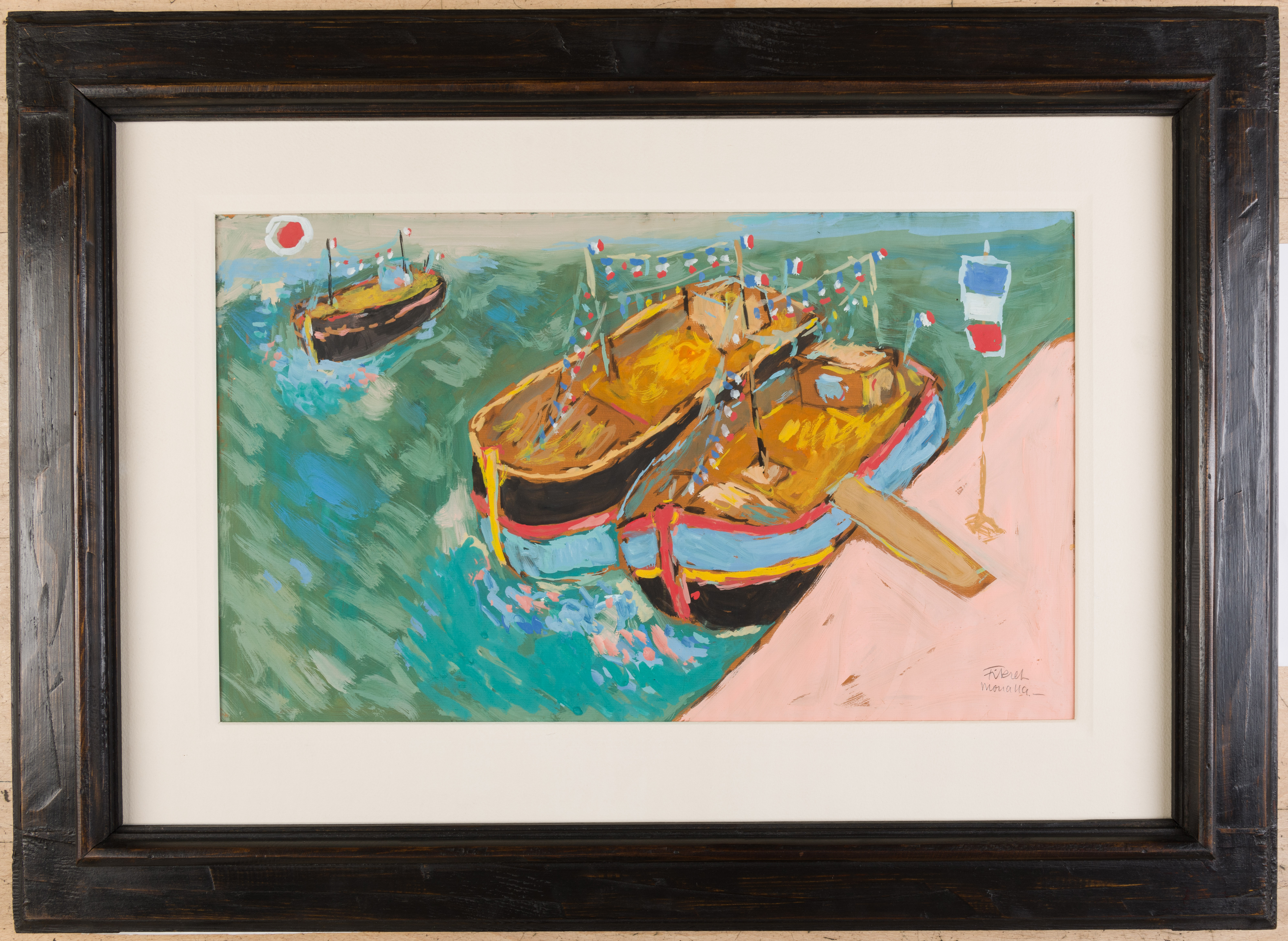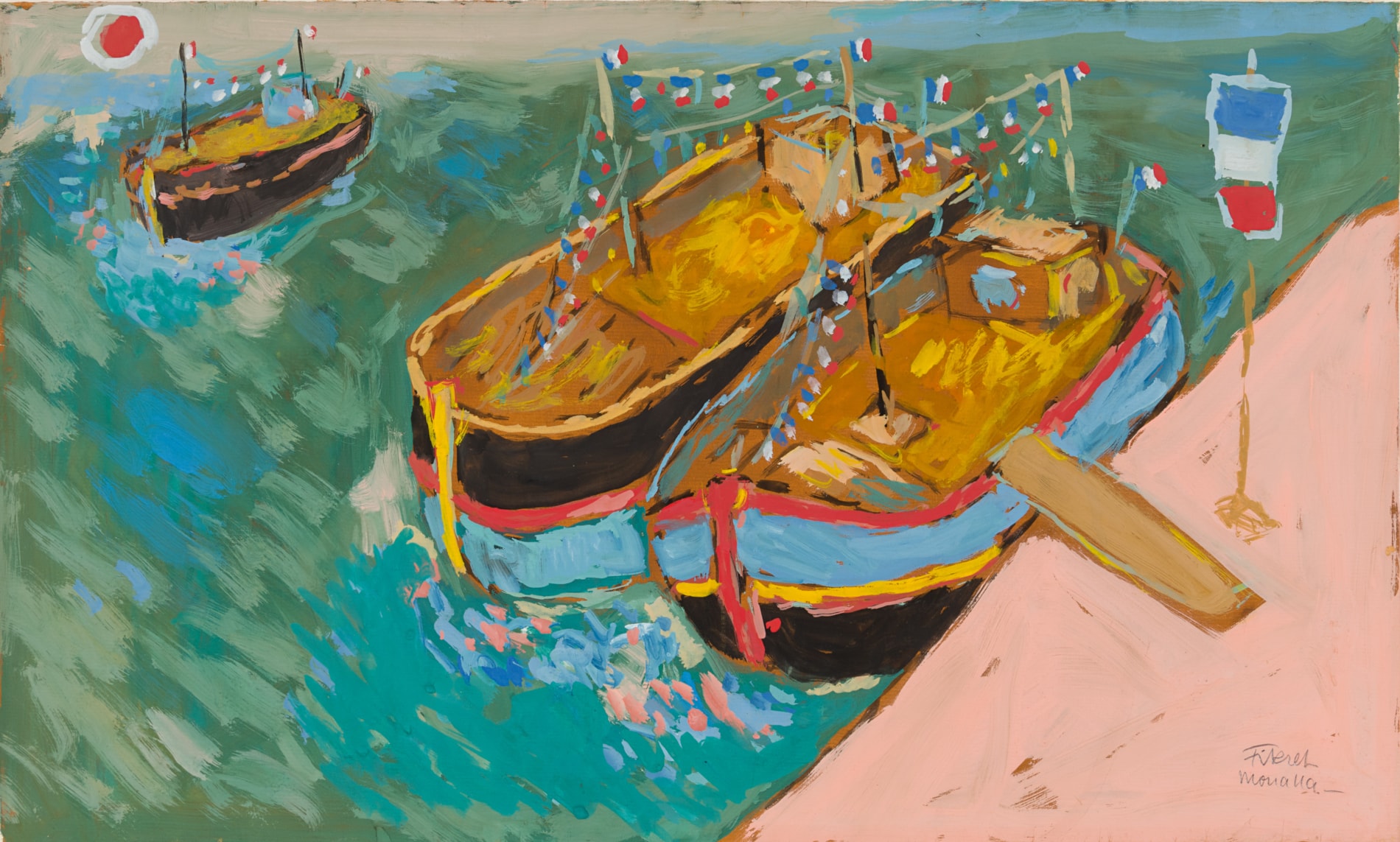 This large gouache drawing is a splendid example of Fikret Mualla’s vibrant, painterly style. The subject of barges on the Seine or the Marne rivers was a particular favourite of the artist, and appears in several gouaches, most of which are today in private collections.