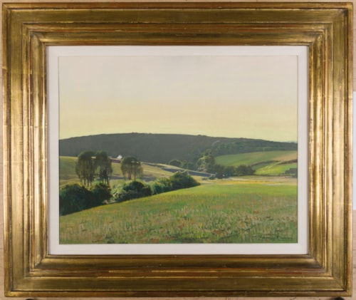 This very large landscape is a fine example of Firmin Baes’s meticulous pastel technique. As Jean Marchal wrote of the artist, ‘The pastels of Firmin Baes reach the highest heights of virtuosity. Finesse, grace, elegance, even refinement, these are the goals that in still life and landscape as well as in genre subjects, the artist’s dazzling talent undoubtedly achieves.’ Pure pastel landscapes such as this are, however, fairly rare in the artist’s oeuvre.