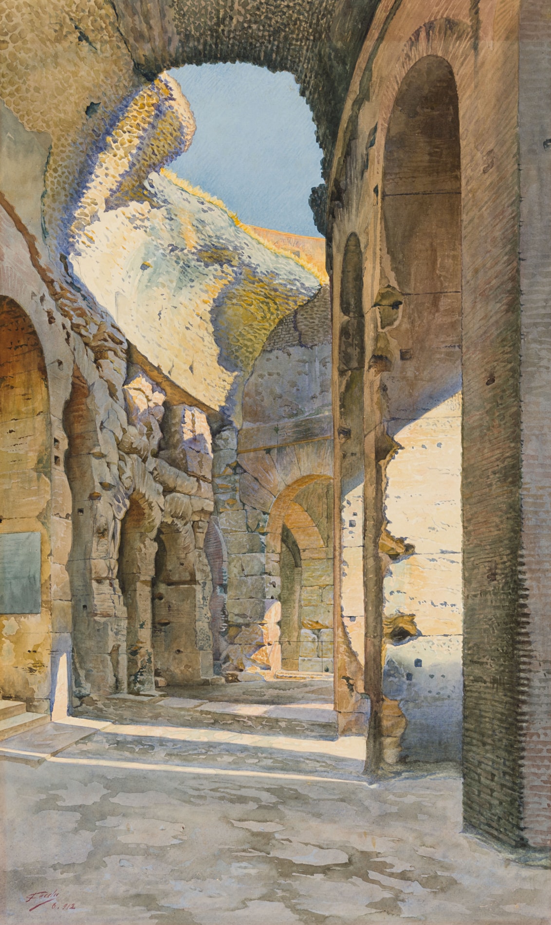 A similar watercolour of the interior of the Colosseum by Lorenzo Cecchi, signed and dated 1907, was sold at auction in Italy in 2008.