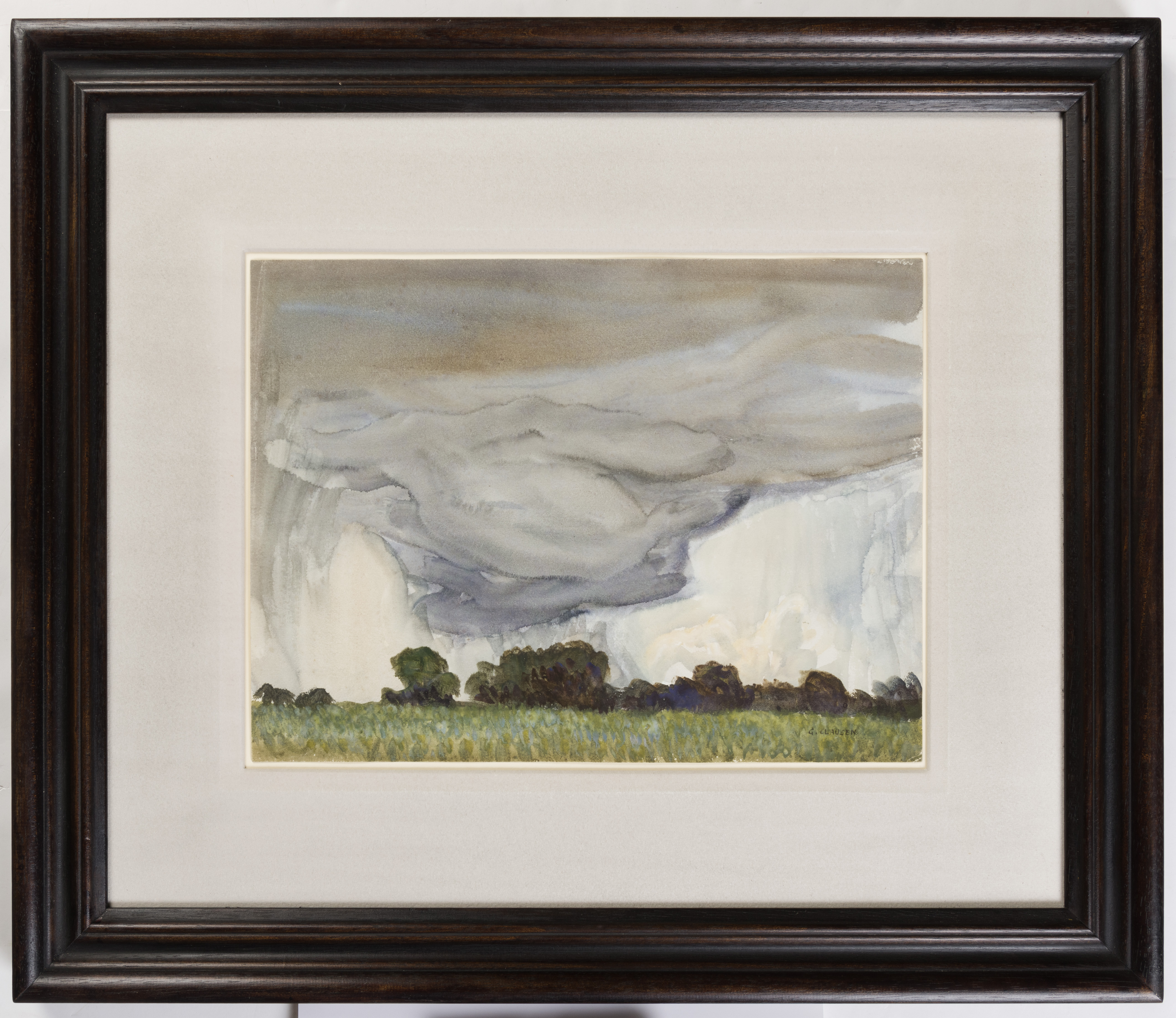 Also inscribed Sir George Clausen / R.A. R.W.S. / 1852-1945 / Rain Clouds / A.F. No 246 on another old backing board.
