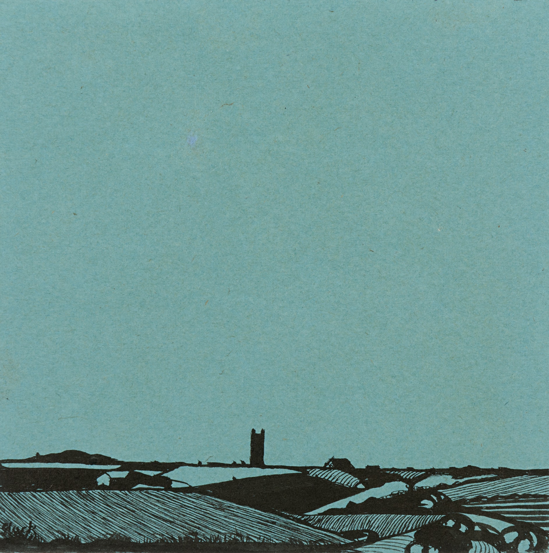 Although it is often difficult to date the artist’s landscapes, or to identify their exact location, the present sheet is very closely related to a small Cornish landscape painting of 1964, today in a private collection, in which an identical church tower – probably the late 15th century parish church of St. Buryan - appears on the horizon.