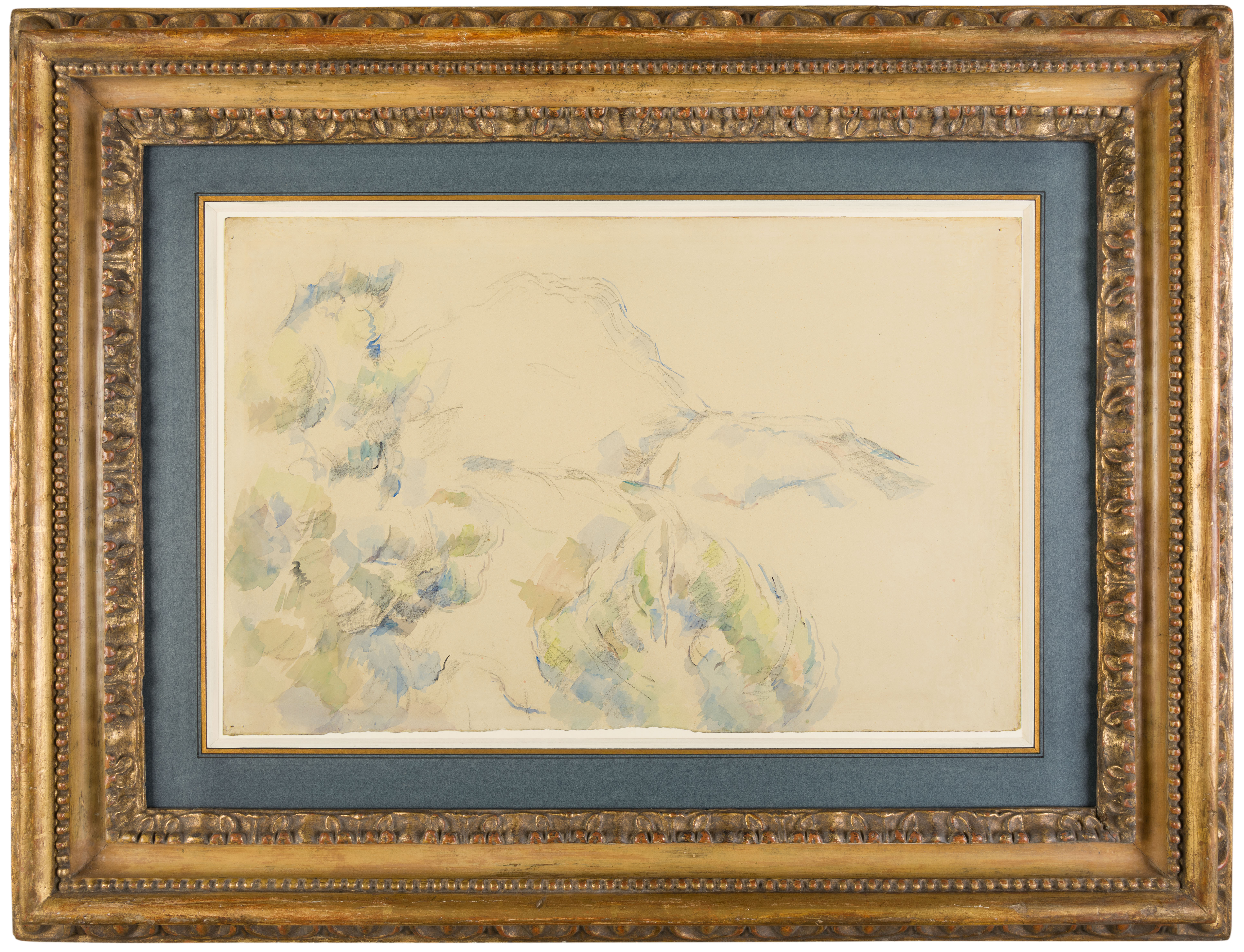 This Landscape with the Montagne Saint-Victoire was one of several watercolours by Cézanne that were exhibited at the first ‘Secessione’ exhibition in Rome in 1913, when the artist’s work as a watercolourist was still little-known. It was purchased three years later by Lillie P. Bliss (1864-1931), one of the earliest American collectors of Cézanne’s paintings and watercolours. Bliss acquired her first work by Cézanne in 1913, and continued to purchase works by the artist almost to the end of her life. Although she made annual visits to Europe in the 1920s, she seems to have acquired almost everything in her collection from art dealers in New York. The present sheet was one of eight watercolours purchased by Bliss at the Cézanne exhibition held at the Montross Gallery in New York in 1916, which had been selected and curated by Félix Fénéon of the Galerie Bernheim-Jeune in Paris.