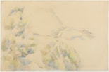 In his critical catalogue raisonné of Cézanne’s watercolours, John Rewald has noted that this watercolour Landscape with the Montagne Saint-Victoire differs in mood from the related painting in Detroit: ‘What contributes to this different mood is that for the painting Cézanne had adopted a vertical format, whereas in this watercolor the more “congenial” horizontal composition allows the motif to breathe more freely. The motif seems to have been painted from the vicinity of the terrace of Château Noir. Pale washes, predominantly blue and green, are applied over a very light pencil sketch. The outlines of the mountain, however, have been redrawn several times with the pencil and then delicately retraced with a thin blue brush line.’