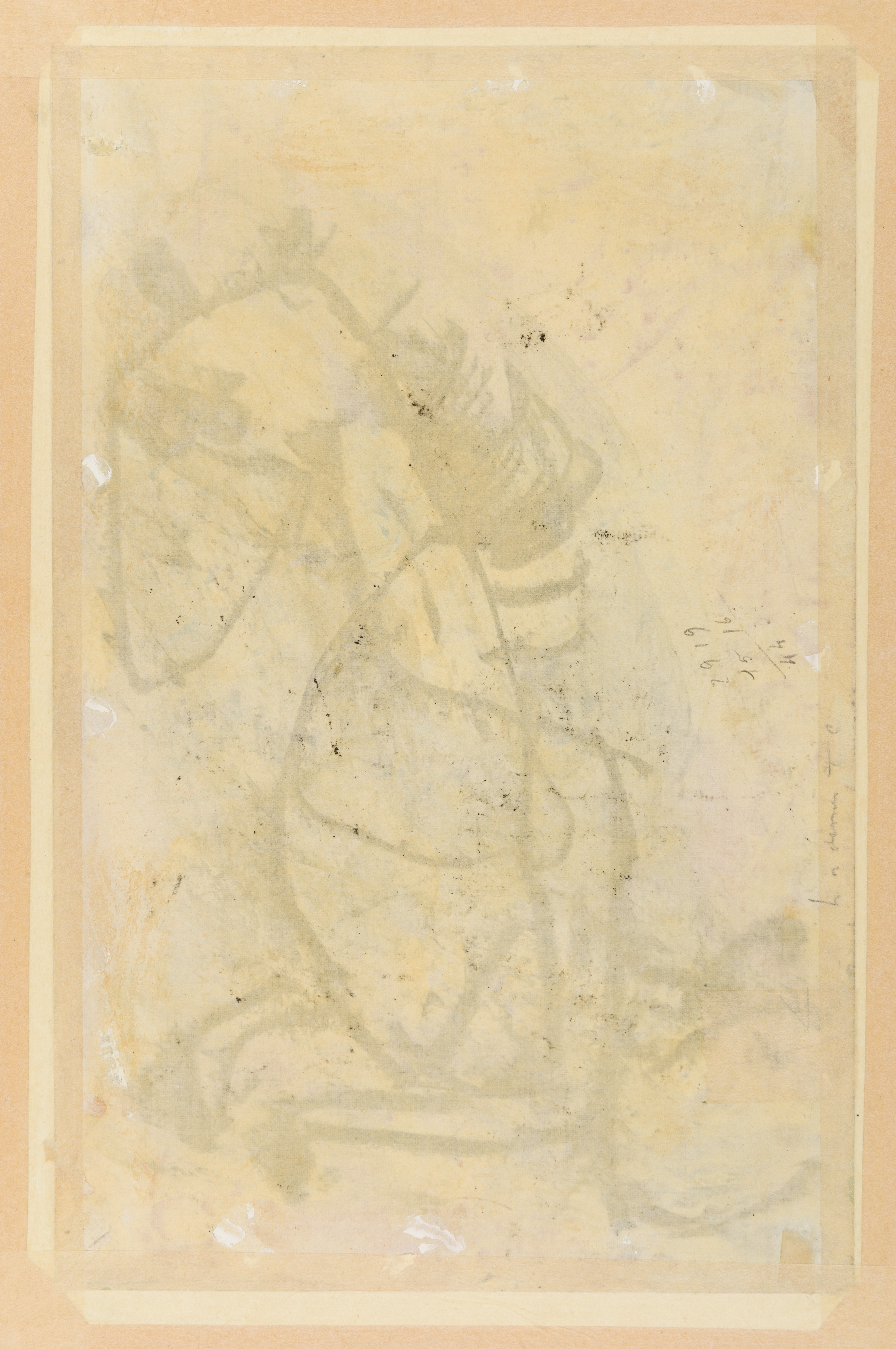 A study of a horse or donkey(?) drawn in ink on the verso, backed.