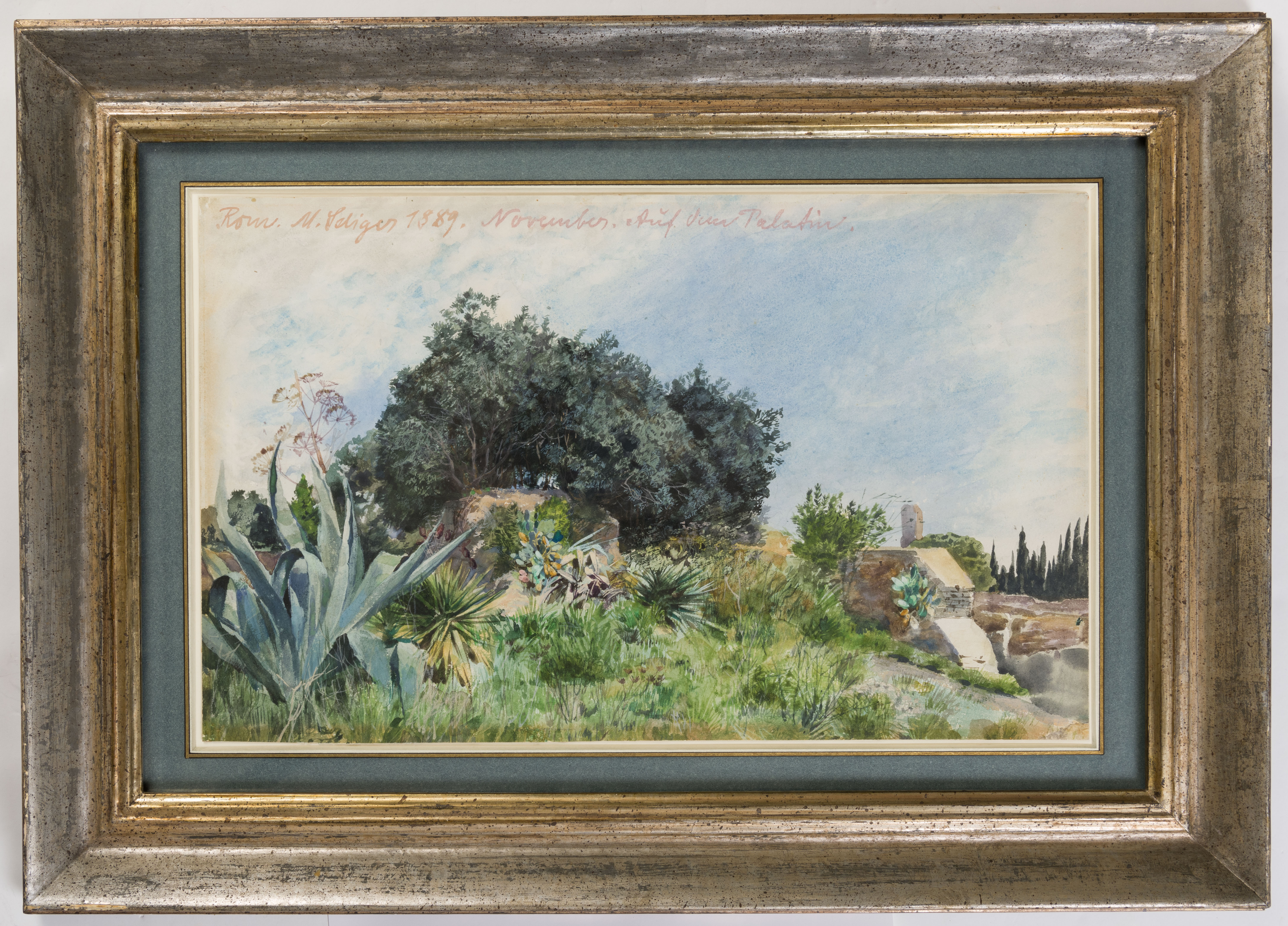 Signed, dated and inscribed Rom. M. Seliger 1889. November. Auf dem Palatine. in red ink at the top of the sheet.