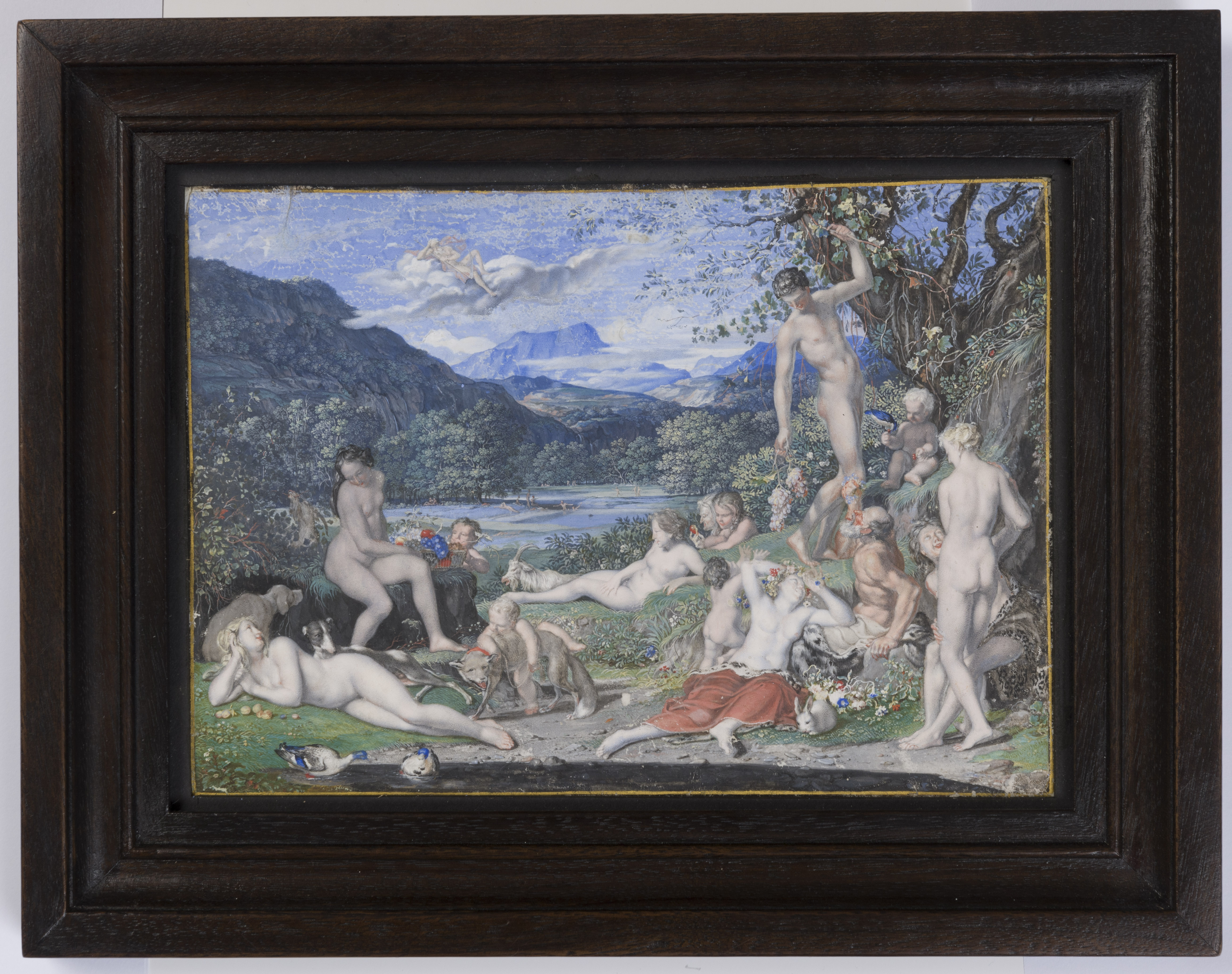Joseph Werner’s extant oeuvre includes less than sixty oil paintings and some fifty miniatures, as well as around sixty drawings (including several fantastical scenes of sorcery and witchcraft, perhaps influenced by the work of Salvator Rosa) and two etchings. Although his output as an artist is relatively small, his work is always characterized by a precise technique. He is perhaps best known for a series of highly refined, small-scale compositions drawn in gouache on vellum, of which this Bacchanal is a particularly fine example. Around fifty of these exquisite miniaturist works – depicting mythological, religious or allegorical subjects, as well as some portraits - have survived, bearing dates ranging from 1662 to 1685. These were the works for which the artist seems to have been held in the highest esteem in his lifetime.