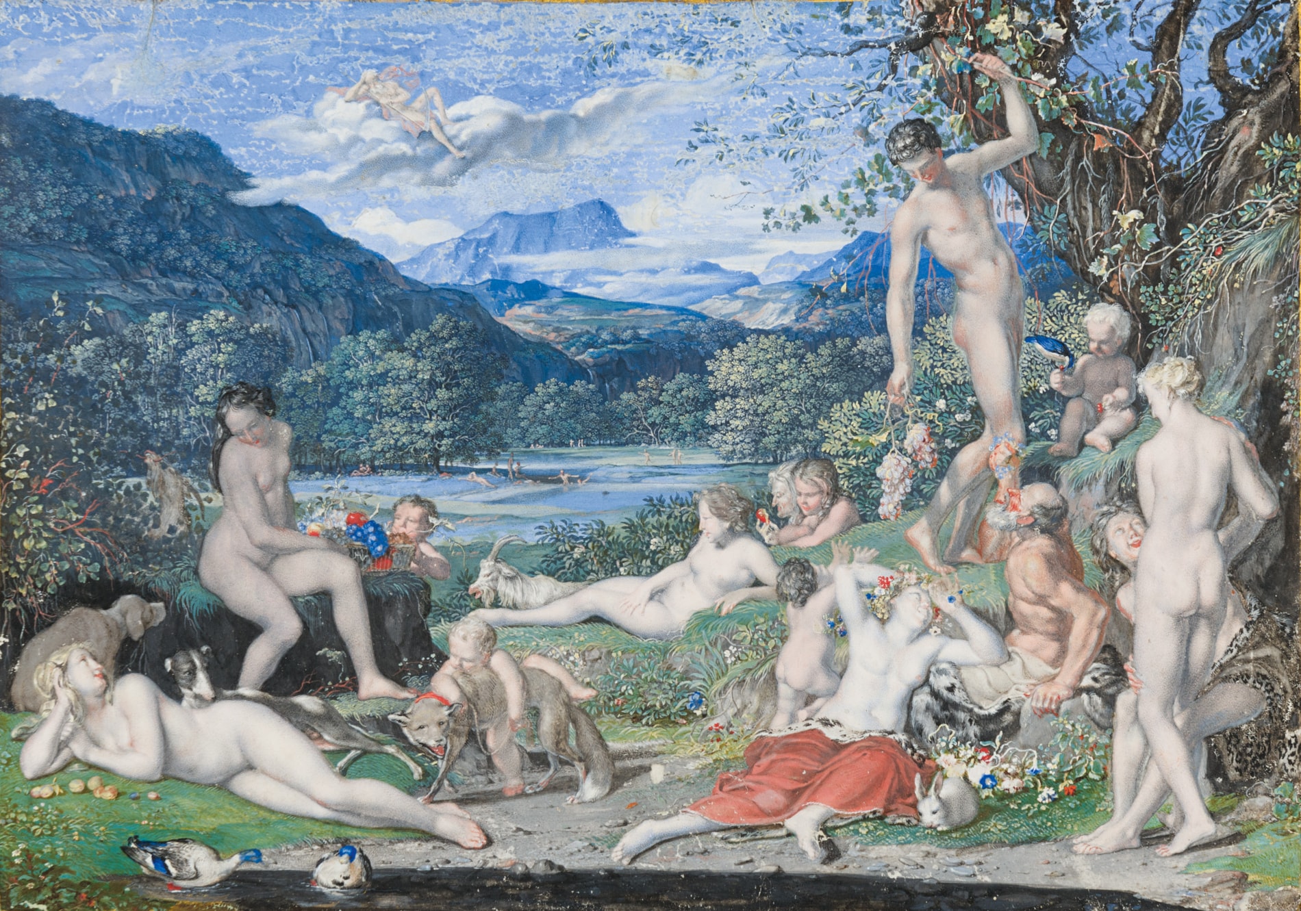 Joseph Werner’s extant oeuvre includes less than sixty oil paintings and some fifty miniatures, as well as around sixty drawings (including several fantastical scenes of sorcery and witchcraft, perhaps influenced by the work of Salvator Rosa) and two etchings. Although his output as an artist is relatively small, his work is always characterized by a precise technique. He is perhaps best known for a series of highly refined, small-scale compositions drawn in gouache on vellum, of which this Bacchanal is a particularly fine example. Around fifty of these exquisite miniaturist works – depicting mythological, religious or allegorical subjects, as well as some portraits - have survived, bearing dates ranging from 1662 to 1685. These were the works for which the artist seems to have been held in the highest esteem in his lifetime.