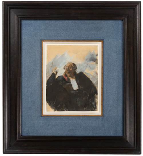 His posthumous sale, Paris, Galerie Manzi, Joyant, 11-12 May 1914, lot 119 (L’Avocat. En robe, tête découverte, il pérore dans le feu de la plaidoirie. Fond blanc, noir gris et bleu. Dessin rehaussé. Haut., 16 cent.; larg., 12 cent.)