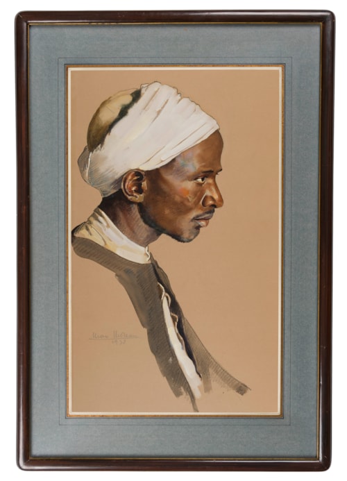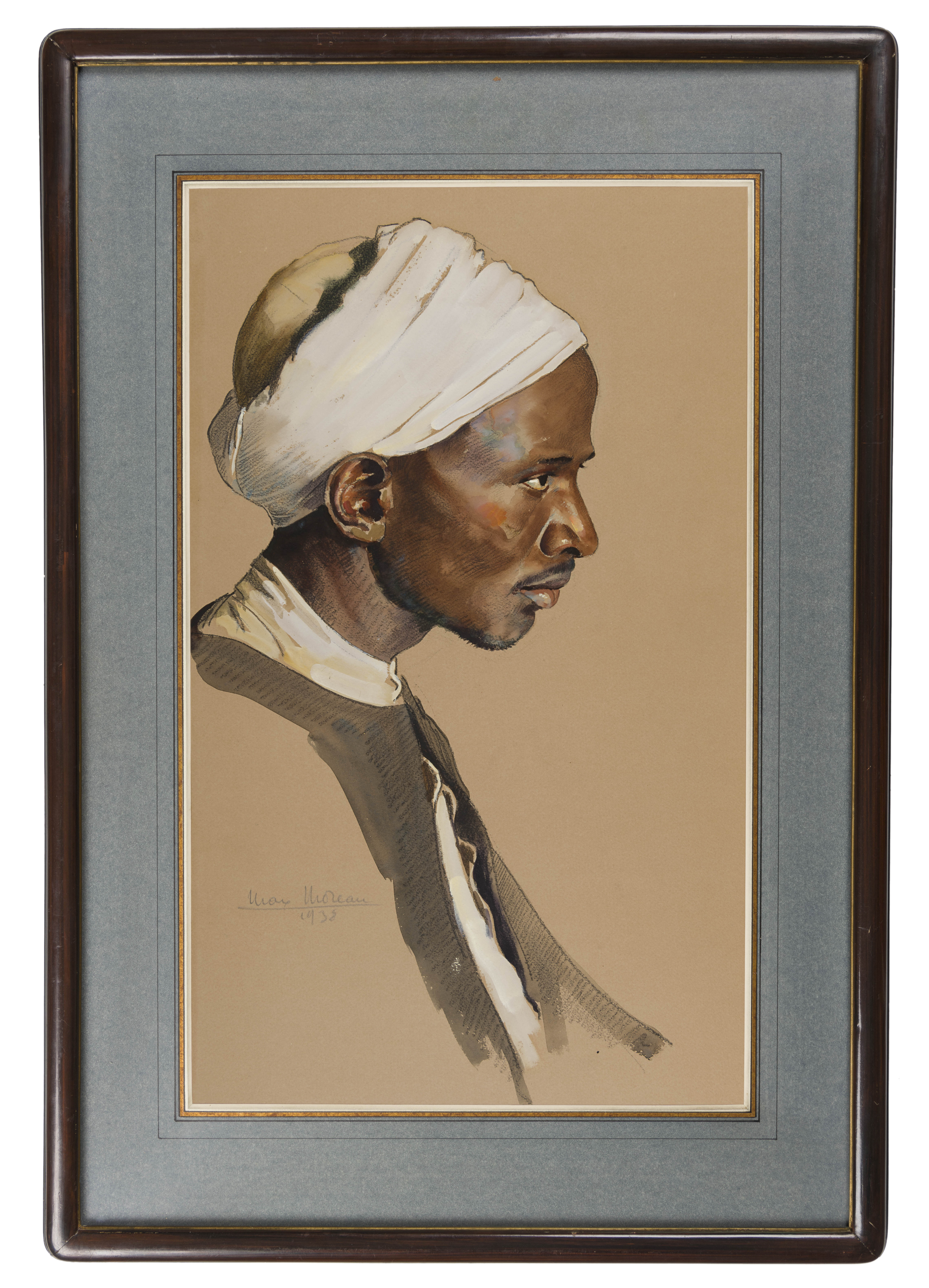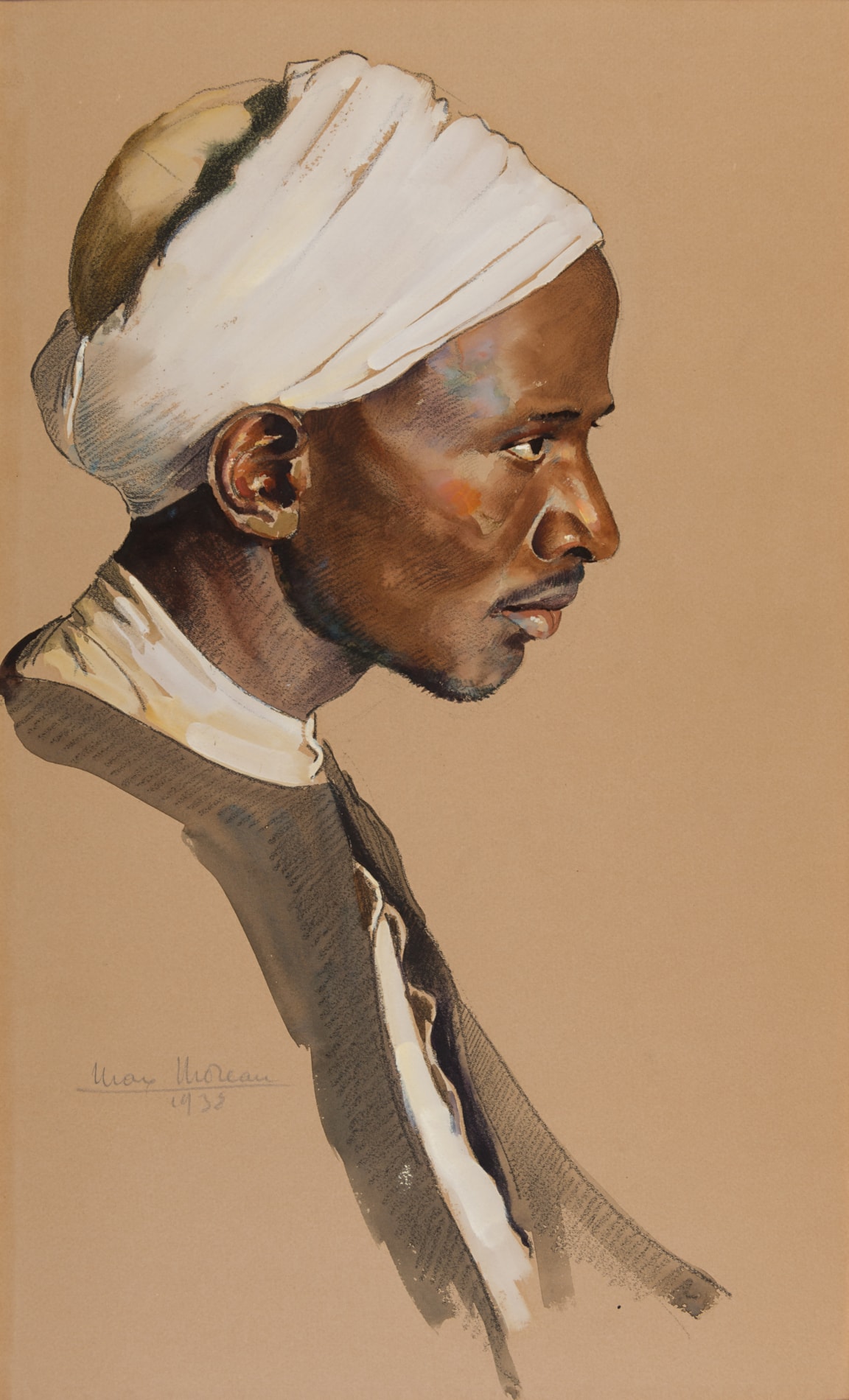 Among stylistically comparable drawings by Max Moreau is a watercolour and gouache study of an Arab man, dated 1937, formerly in the collection of the Broun family at Coulston in Scotland and sold at auction in 2017, as well as a similar study of a Moroccan man playing the flute, drawn in Marrakesh in 1950, which appeared at auction in Paris in 2005 and 2007.