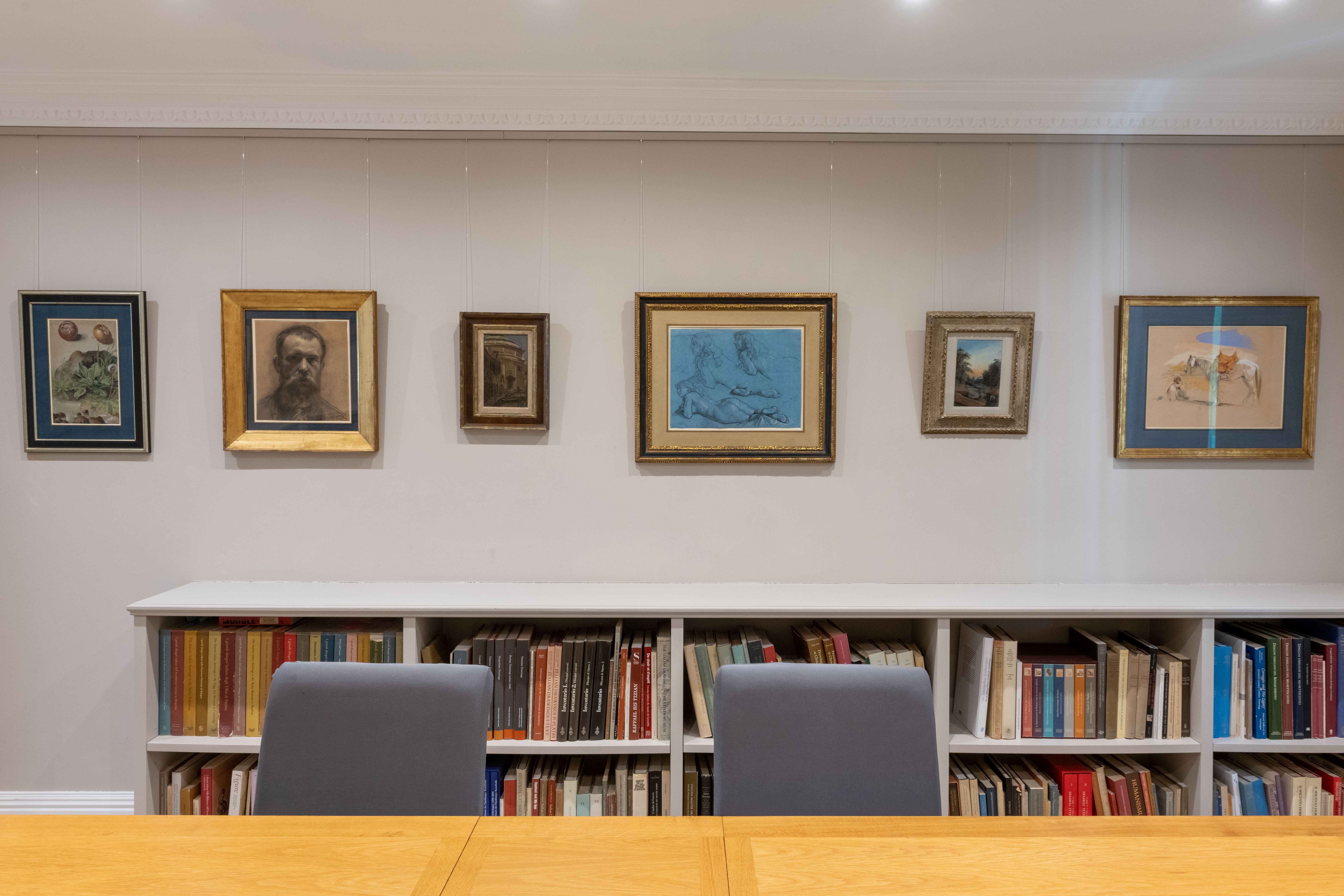 Mariani seems to have favoured blue paper for his studies from life. A stylistically comparable sheet of studies of hands and feet, also drawn on blue paper, was in a private Florentine collection and appeared at auction in Italy in 2014. The present sheet has also been likened, in stylistic terms, to three similarly large-scale drawings of allegorical female figures, datable to around 1885 and perhaps intended for the decoration of a theatre, which are part of a group of 244 drawings, oil sketches and paintings by Mariani acquired by the Museo di Roma in 1966. Also comparable are two studies in black chalk, one of the sole of a right foot and the other of a left arm, that were exhibited at a gallery in Rome in 2001.