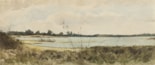 Harpignies developed a particular speciality of landscape drawings in watercolour, a medium he mastered early on. Watercolour drawings accounts for many of the artist’s finest works, and were the basis of his reputation, particularly outside France. (As a contemporary English critic, writing in 1905, noted, ‘one ventures to prophesy that the day will come, if it has not already arrived, when the water-colours of M. Harpignies will be prized even more dearly than his paintings in oils. As an aquarellist M. Harpignies is practically without a living rival in his own country...’). Harpignies exhibited his first watercolour landscapes at the Salon of 1864, where they were praised by the critic Théophile Thoré, and in later years exhibited at both the Société des Aquarellistes Français in Paris and the British Watercolour Society in London. The freshness and luminosity of his watercolours soon gained him a wide audience, and led to his taking on a number of private pupils. Harpignies’ reputation as a watercolourist spread to England, and he was invited by Whistler to exhibit at the Royal Institute in London, From the early 1900’s onwards, he began to substitute charcoal for watercolour, and his drawings take on a silvery-grey tonality that is perhaps indicative of his failing eyesight. Nevertheless, Harpignies maintained an emphasis on a distinctive manner of tonal landscape, inspired by Corot, in the paintings and drawings that he produced well into the early years of the 20th century.