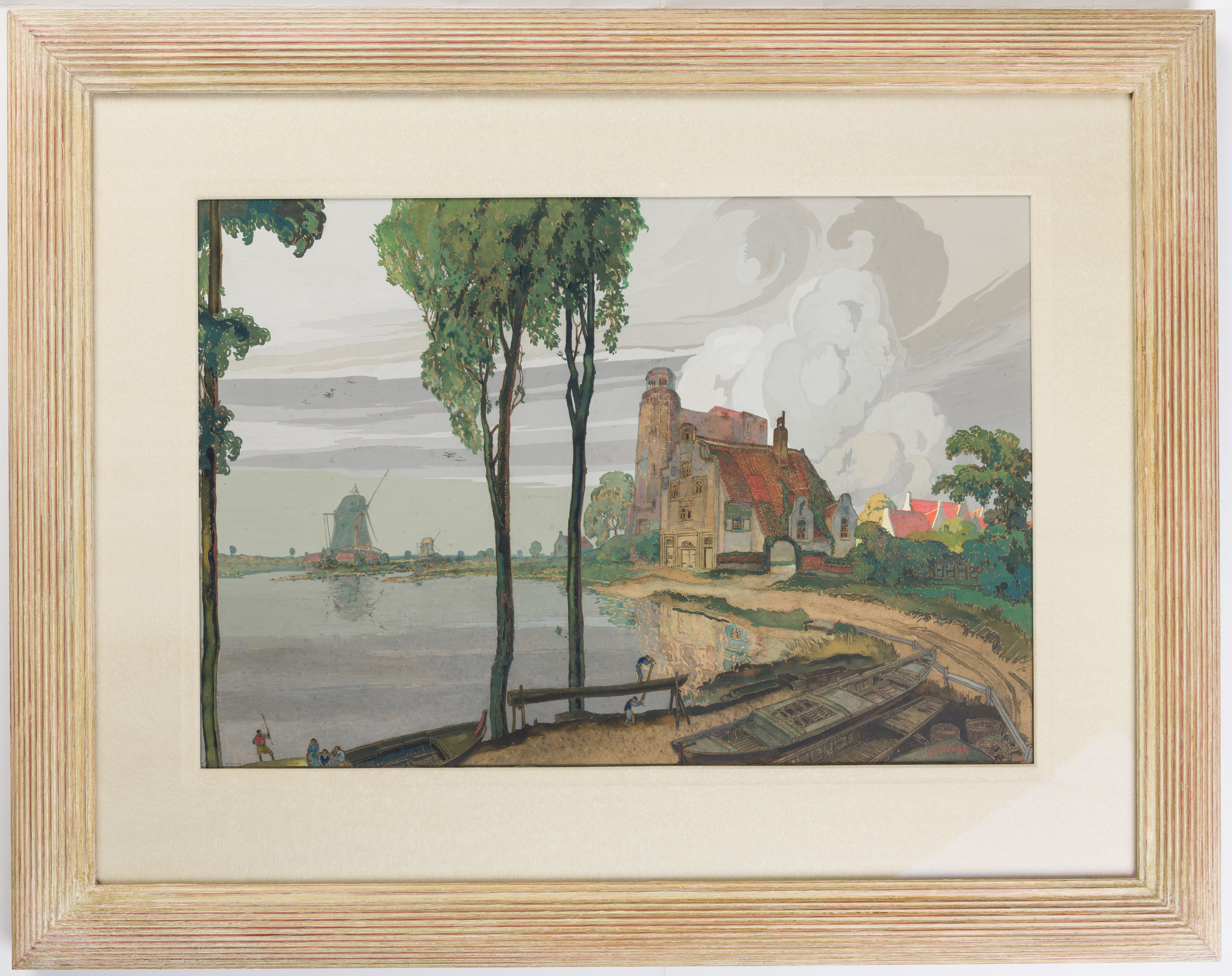 The De Feure scholar Ian Millman has suggested that works such as this may, as a group, have been intended to represent a sort of panorama of landscapes in different seasons. As he further notes, ‘De Feure developed a highly personal, original approach to the [landscape] genre that may best be described as Art Nouveau landscape painting. It distanced itself from Impressionism and Neo-Impressionism on one hand and the reactions against these movements by Gauguin and the Pont-Aven Group and the Nabis on the other, yet the common factor underlying all these disparate currents was the impact of Japanese art.’