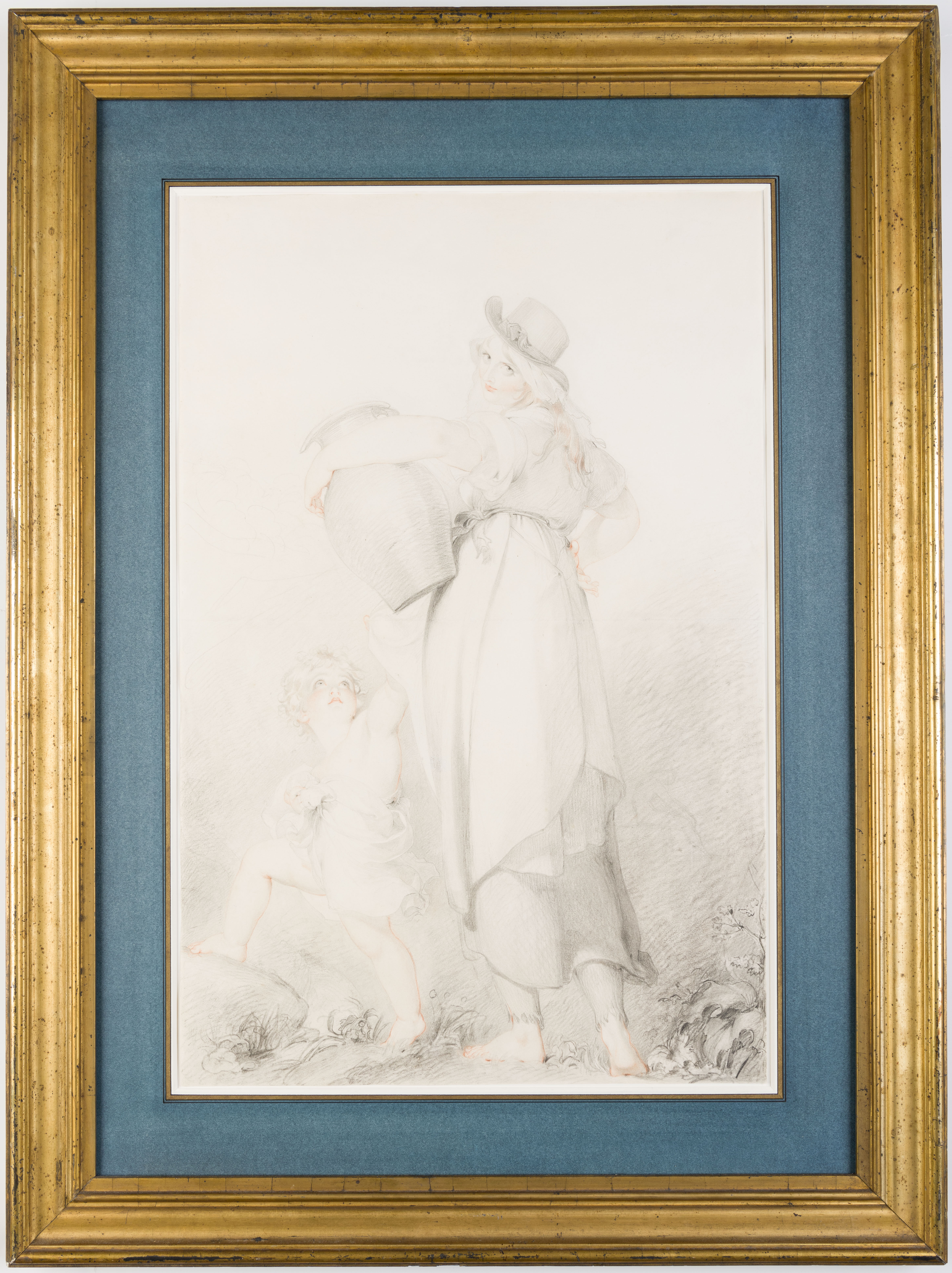 Only a few drawings of genre, landscape or history subjects by Thomas Lawrence are known, and this large sheet is one such example. Executed with delicate touches of black and red chalk, it is likely datable to the 1790s. It is among the largest known drawings by the artist, and is also unusual in his drawn oeuvre on account of its genre subject. Indeed, this fine drawing can be seen as Lawrence’s contribution to the popular 18th century English genre known as the ‘fancy’ picture; scenes of everyday life that usually involved an element of narrative or storytelling, often of a sentimental nature, and were imbued with ‘quasi-religious or social implications, [and] with an emphasis on poverty, benevolence and sympathy.’ An antecedent of Victorian subject paintings, the 18th century ‘fancy’ picture included depictions of children, street urchins, maids, market women, shepherds, beggars and so forth, in the form of portraits or character studies. Although he painted very few genre subjects, it may be noted that Lawrence’s diploma work upon his election to the Royal Academy in 1794 was just such a ‘fancy’ painting of a Gypsy Girl, which remains today in the collection of the Royal Academy in London.