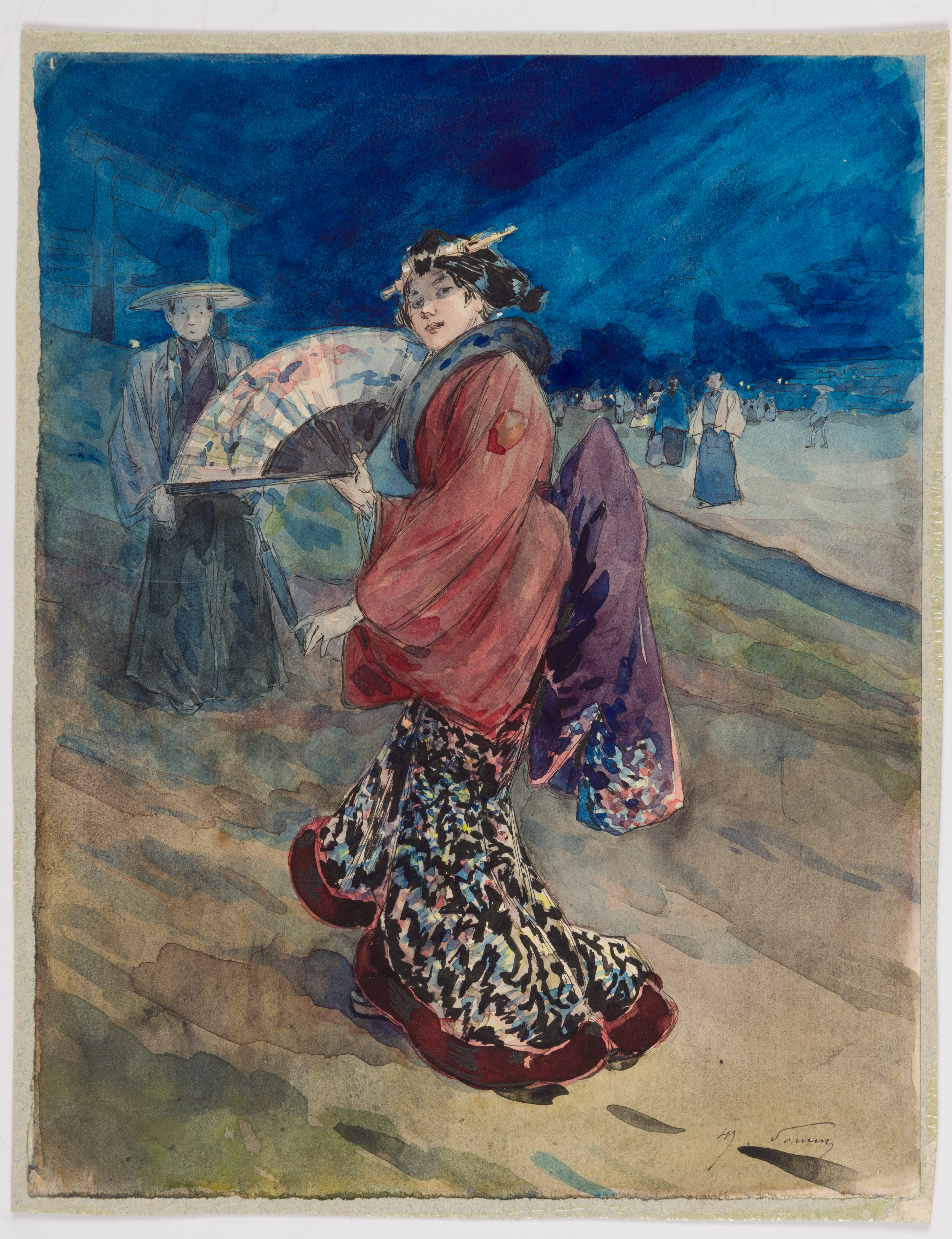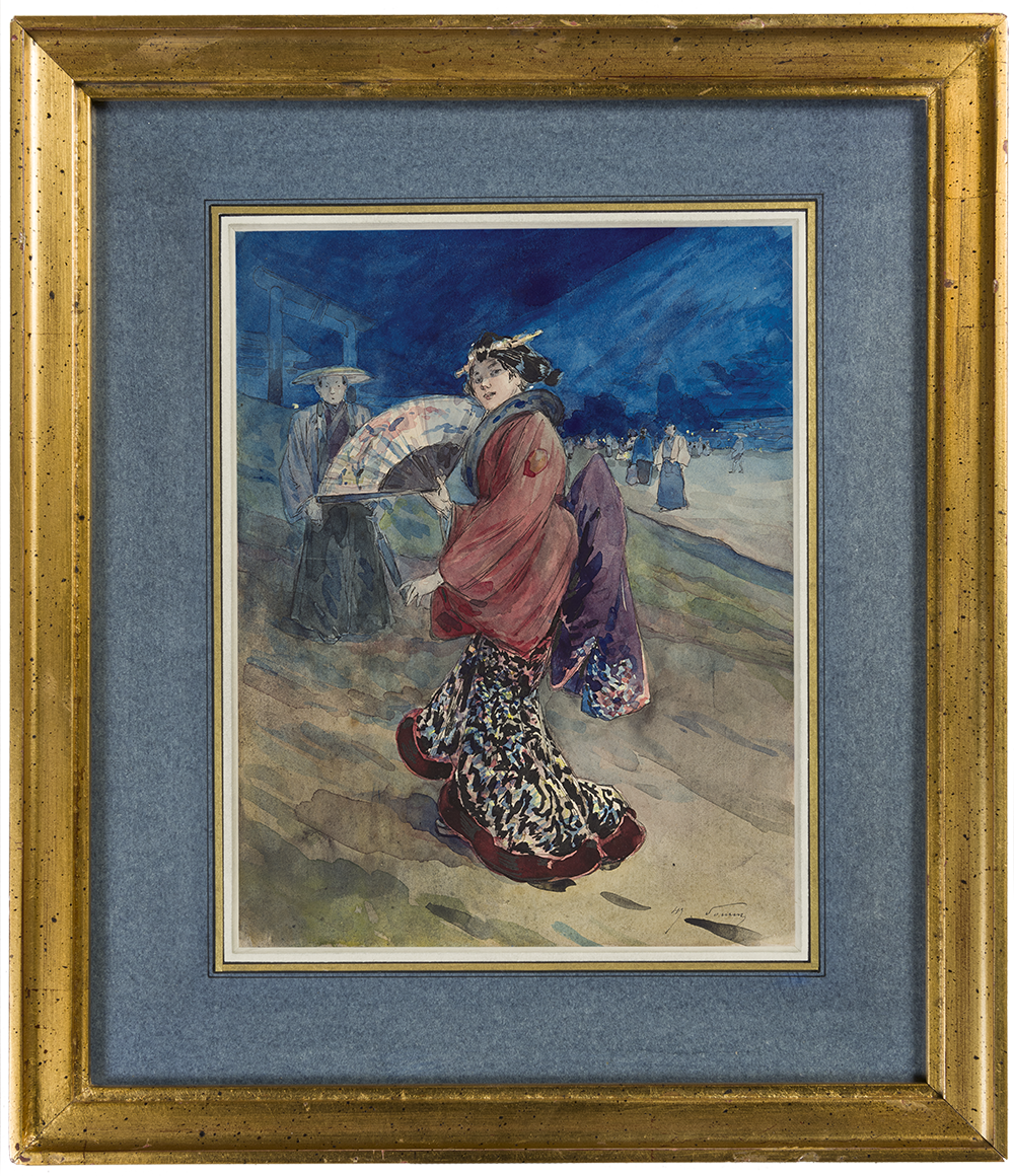 The present sheet may be included among a group of vibrant watercolours by Somm of women in Japanese dress, several of which depict the subject in a nearly identical pose to that of the woman in this drawing.