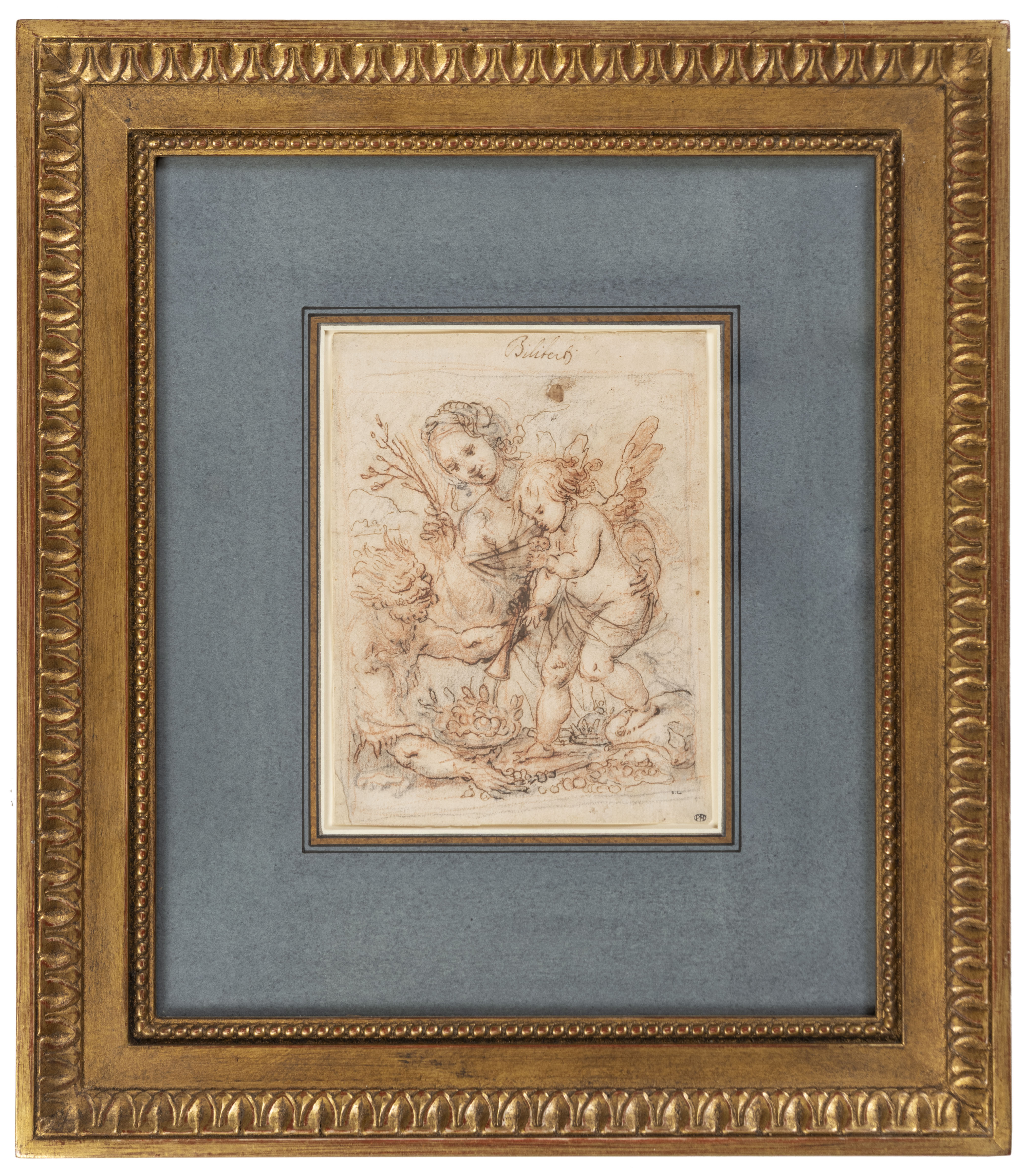 This drawing is likely to date to the first half of the 1630s, when Bilivert was engaged on a number of paintings of mythological subjects. Stylistically, the present sheet may be compared with a number of drawings in the Uffizi. These include a squared compositional study of Apollo and Daphne, which can be related to a painting dated 1630 in the Staatsgalerie in Stuttgart, and another squared drawing of Thetis Giving Arms to Achilles, which is a study for a painting of 1634 in a private collection. Other comparable drawings in the Uffizi include a red chalk study of a winged putto playing a violin and a drawing of Hercules Freeing Hesione, which is a first idea for a late painting by Bilivert, possibly executed with studio assistance, in an American private collection.