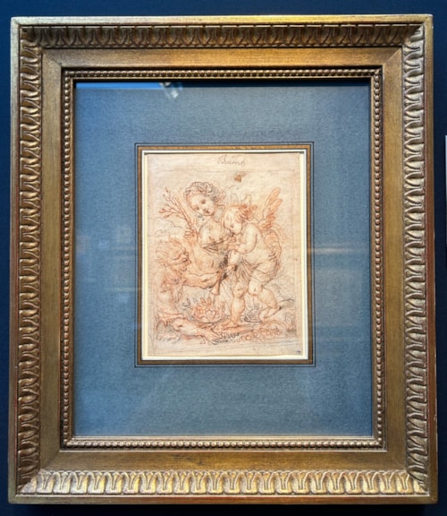 The present sheet depicts three figures – a woman holding a tree branch, a satyr, and a putto playing a flute - in a tightly compacted space. A similar arrangement of figures, although different in subject and composition, is found in a small painting on copper of Venus, Cupid and Pan by Giovanni Bilivert which appeared at auction in 2012 and 2018, of which a much larger autograph variant is today in the Gemäldegalerie in Dresden. A somewhat similar subject also occurs in a small painting of Sleeping Venus Enchained by Cupid with Pan, signed and dated 1638, which was recorded in a German private collection in 1929.