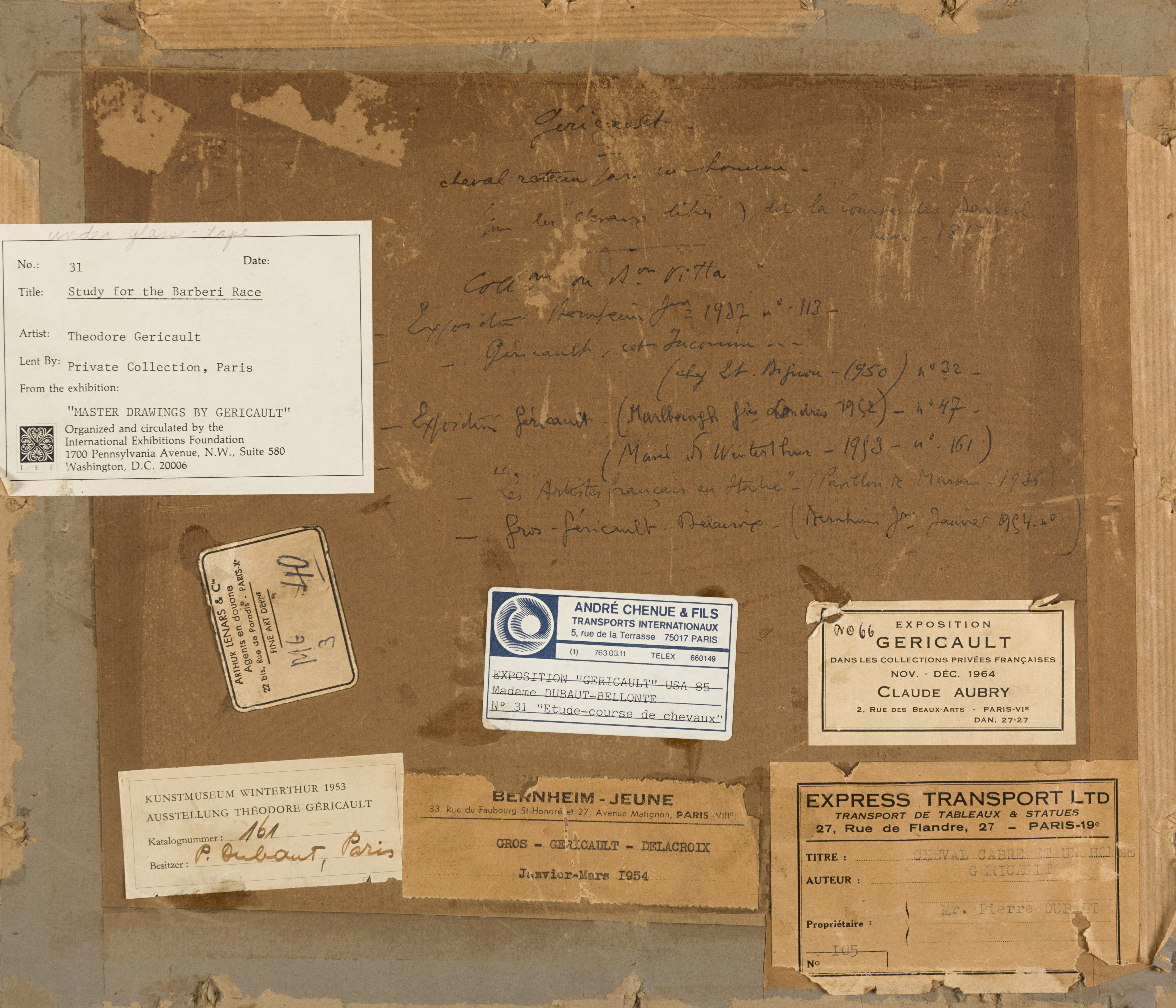 The present sheet then entered the exceptional collection of paintings and drawings by Gericault assembled by the artist and art historian Pierre Olivier Dubaut (1886-1968). As an artist, Dubaut produced paintings, watercolours and prints of horses and equestrian subjects. He was especially fond of the work of Géricault, and organized several important exhibitions of his work. He had planned to publish a catalogue of the artist’s work, in collaboration with the Duc de Trévise, but this never came to fruition. Dubaut also owned works by Delacroix, Richard Parkes Bonington and Jacques-Louis David, among others.