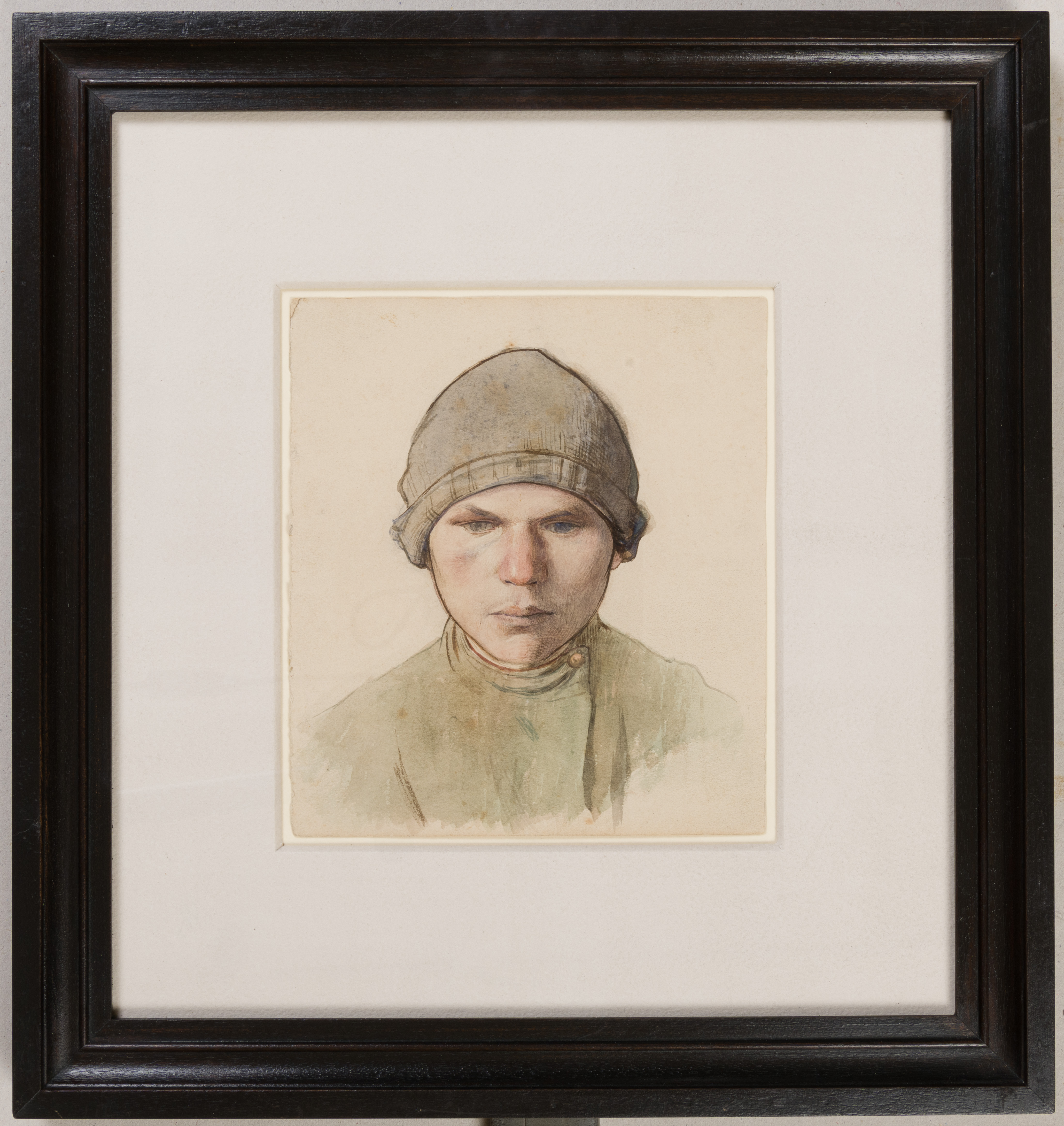 In 2019 the Musée de l’Armée in Paris acquired at auction a group of watercolours and drawings by Laurens of the German prisoner of war camp at Wittenberg. One of these watercolours depicts a young Russian infantryman seated on a cot, who may have also posed for the present sheet.