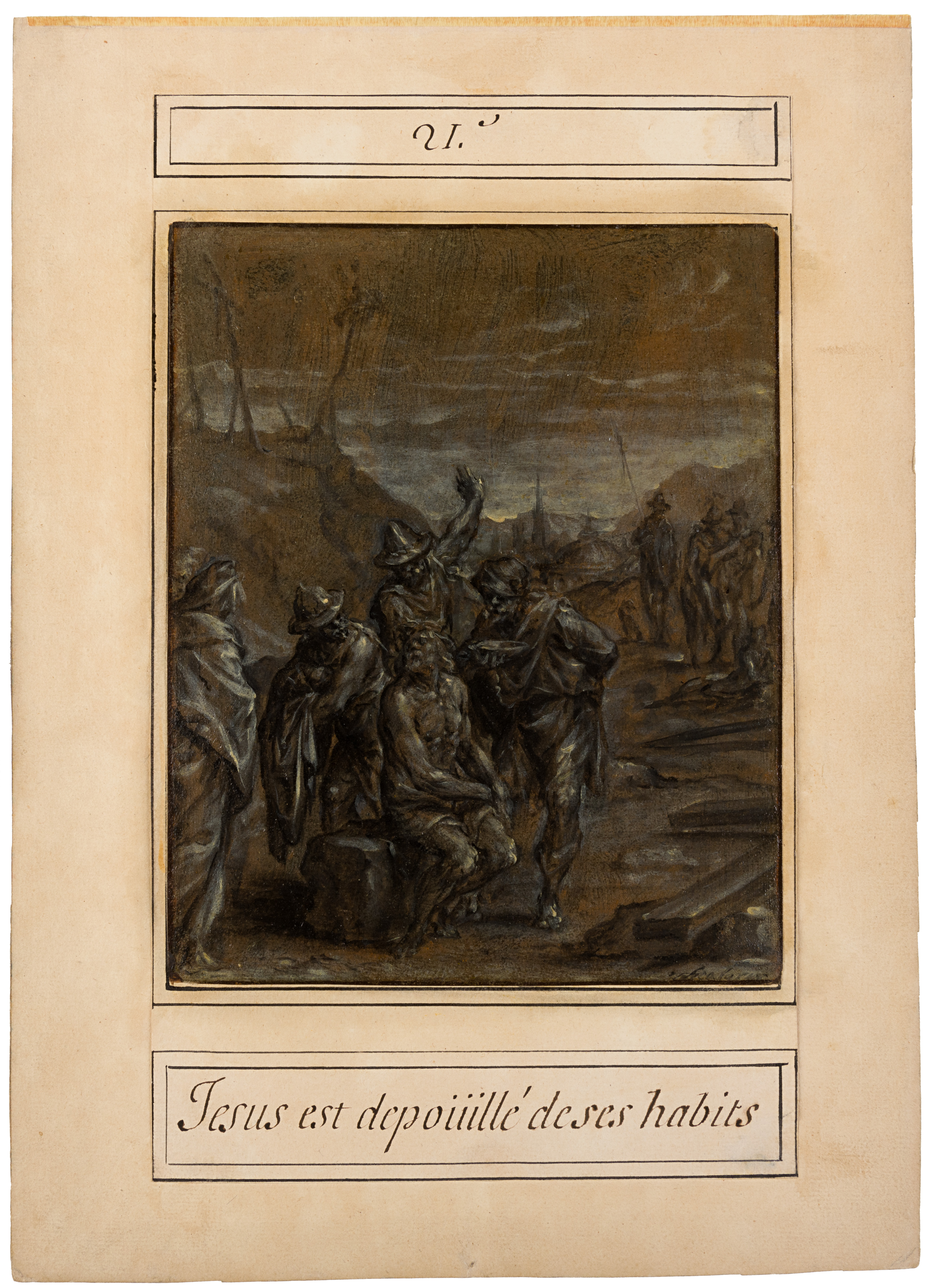 Numbered 21. and inscribed Jesus est depoüillé de ses habits on the old mount.