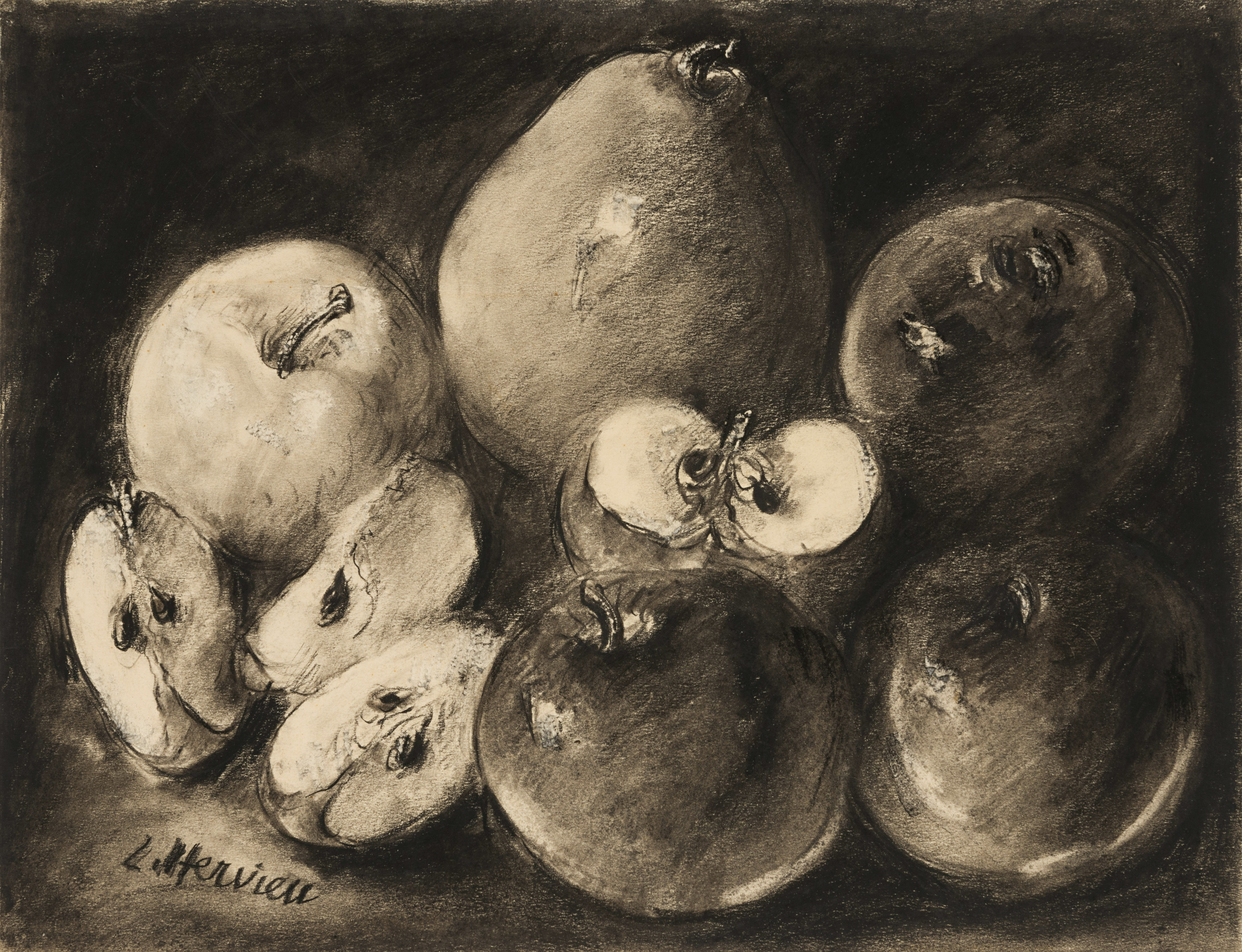 Signed L. Hervieu in charcoal at the lower left.