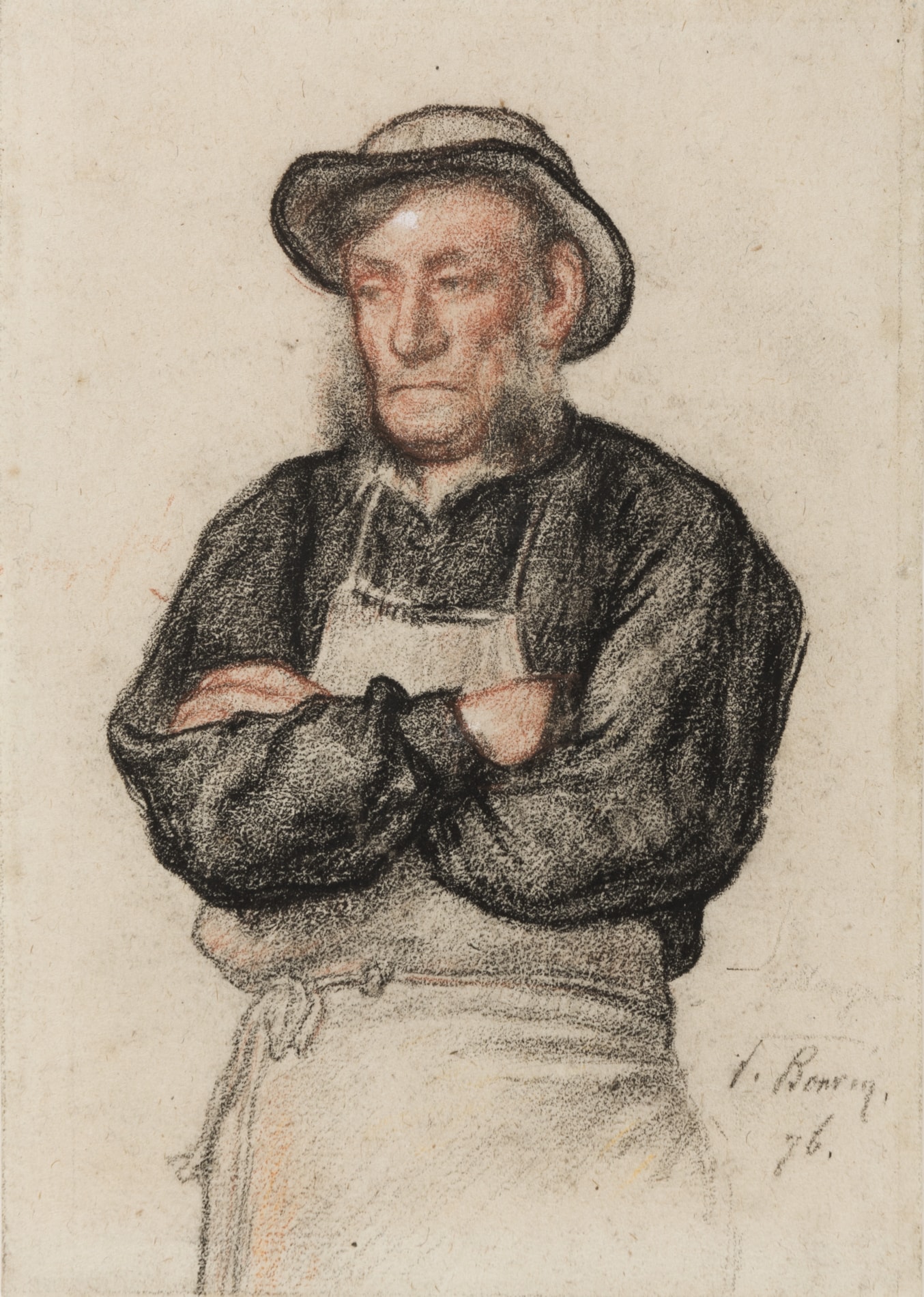 Bonvin’s modern reputation rests largely on his drawings. His first dated works were executed in 1845 and 1846, while he still worked as a civil servant. At this time he would exhibit his drawings informally under the arcades of the Institut de France, and it was there that he met his first significant patron, Louis Laperlier. At the start of his artistic career Bonvin would not be able to afford models, and would often make use of friends and their families as models, as well as washerwomen, cooks, nuns, children, peasants and beggars.