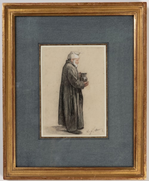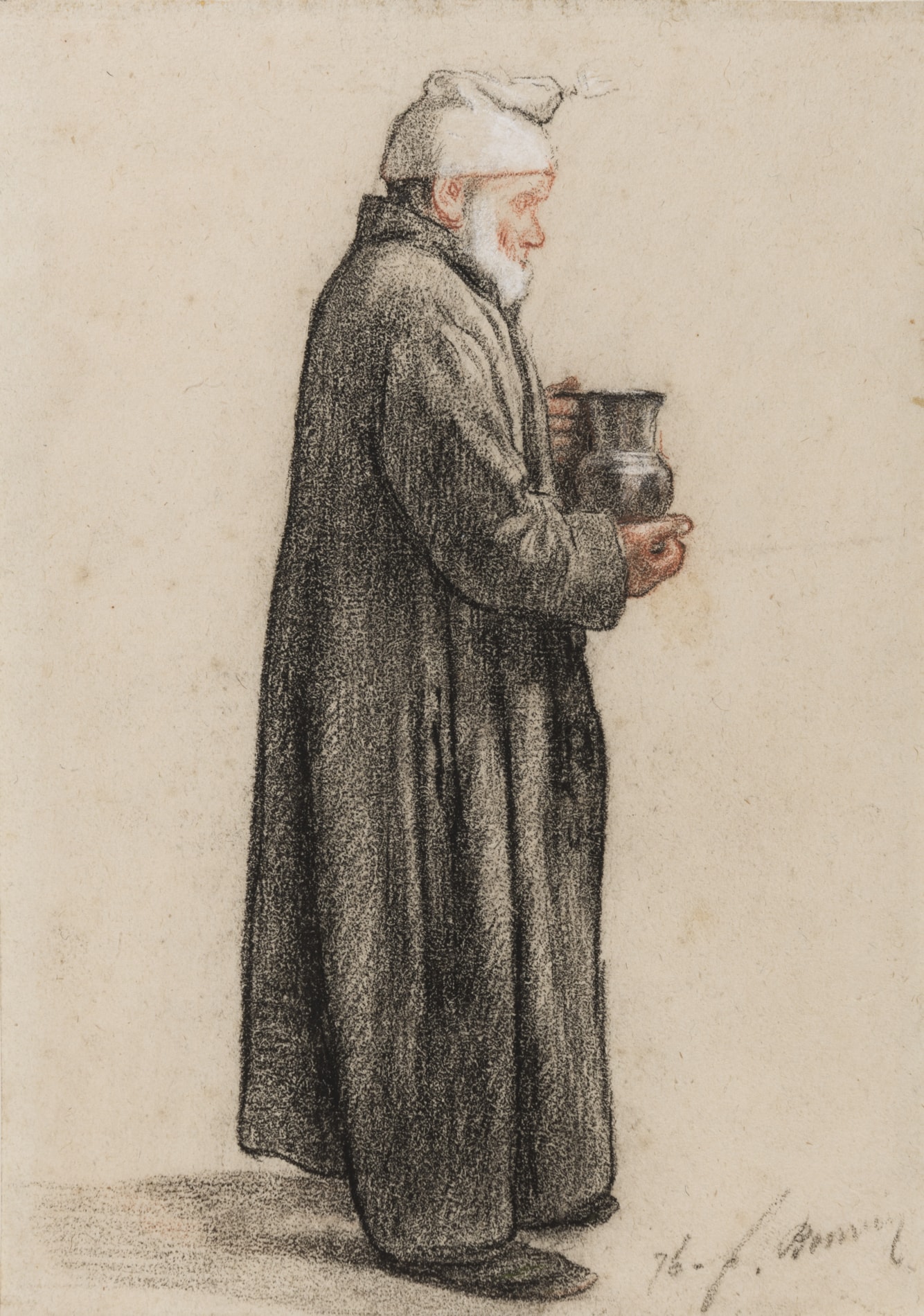 Bonvin’s modern reputation rests largely on his drawings. His first dated works were executed in 1845 and 1846, while he still worked as a civil servant. At this time he would exhibit his drawings informally under the arcades of the Institut de France, and it was there that he met his first significant patron, Louis Laperlier. At the start of his artistic career Bonvin would not be able to afford models, and would often make use of friends and their families as models, as well as washerwomen, cooks, nuns, children, peasants and beggars.