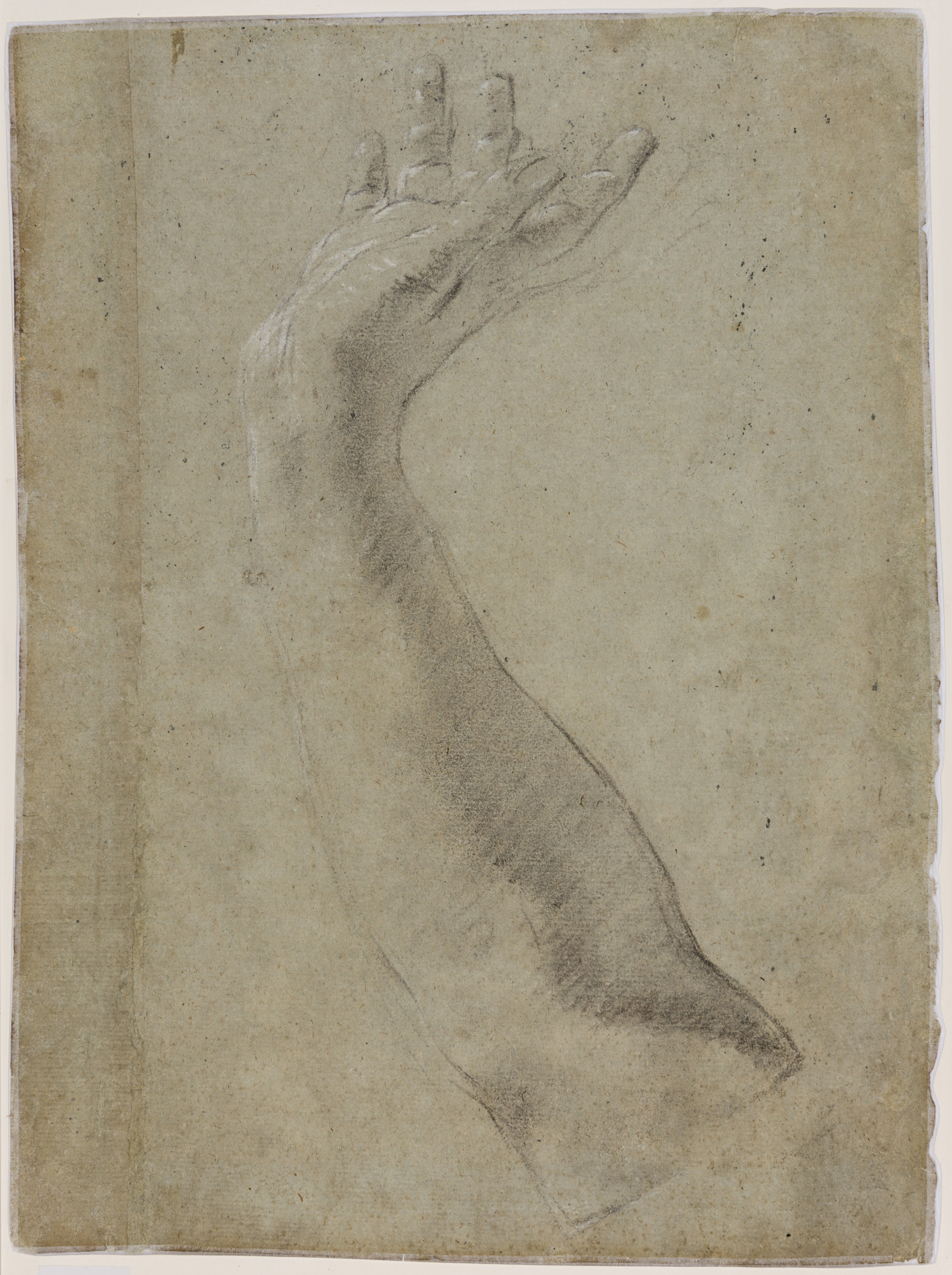 The drawing on the verso of this sheet might be somewhat earlier that the character head on the recto, however, since the study of a right arm appears to be preparatory for the upraised arm of Helen in Piazzetta’s early canvas of The Abduction of Helen of c.1718, today in the Musée Granet in Aix-en-Provence. The large painting, which has been cut at the right edge, was previously attributed to the 18th century French artists Jean-Baptiste Marie Pierre and Michel-François Dandré-Bardon, before being correctly identified as a youthful work by Piazzetta by the art historian Nicola Ivanoff in 1965. Interestingly, Piazzetta adapted the head of Helen from the Musée Granet painting in another early testa di carattere, adding an asp and thereby changing the subject to that of Cleopatra; that drawing was formerly in the Alverà collection and is today in the Galleria dell’Accademia in Venice. A similar treatment of an arm and hand as that on the verso of this sheet is found in a red chalk drawing of a reclining female nude by Piazzetta which was on the art market in 1994.