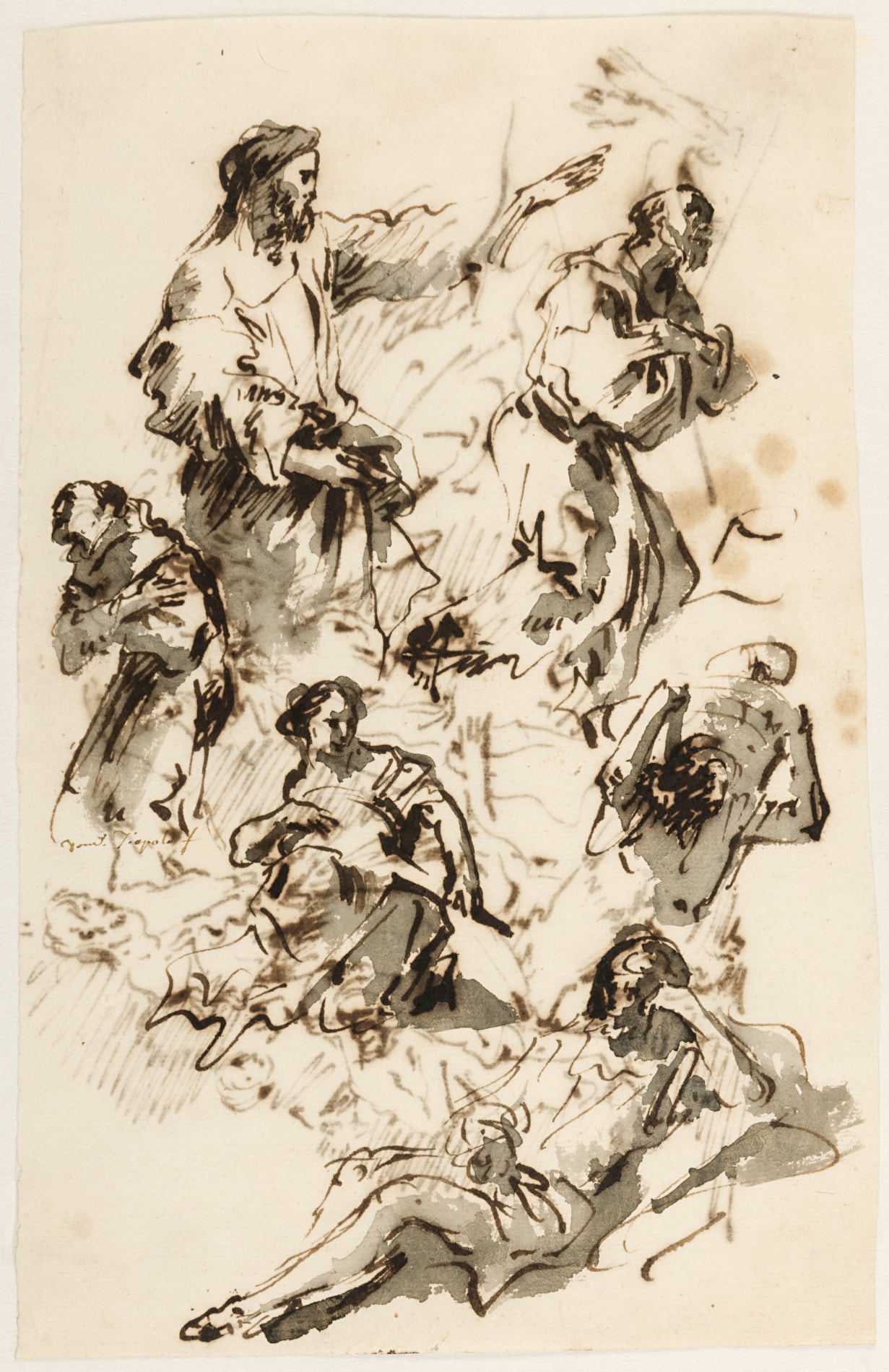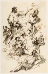 Stylistically comparable drawings by Domenico Tiepolo include a sheet of sketches with a Flight into Egypt in the Musée des Beaux-Arts et d’Archéologie in Besançon and a capriccio composition in the Museo Civico Sartorio in Trieste, as well as a Scene from the Life of Christ in the Graphische Sammlung in Stuttgart.