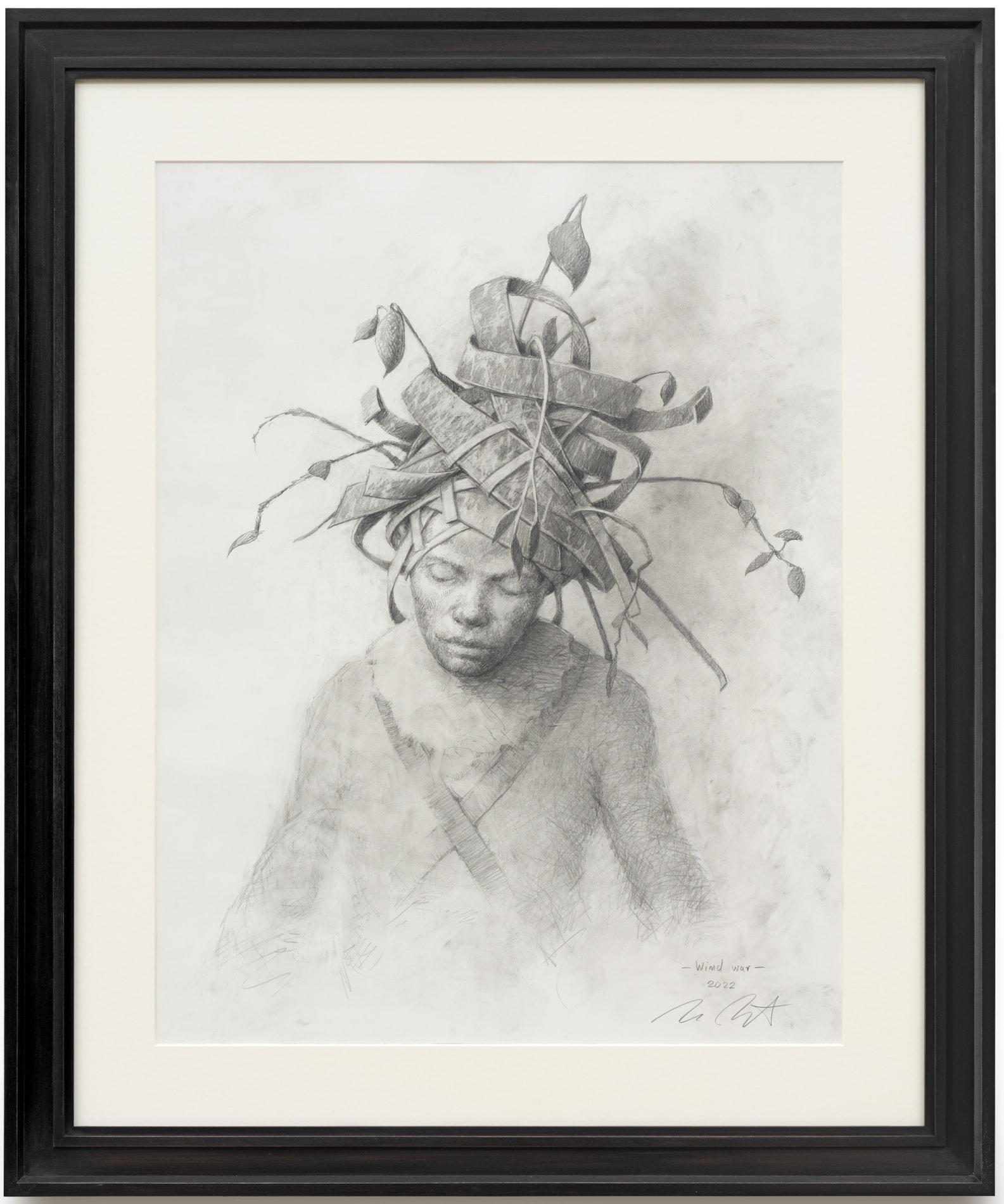 Although Burgert is known predominantly for intensely coloured, life-size figurative paintings, often on a very large scale, his drawings reveal the intricacy of the artist’s character studies in black and white. Densely populated tableaux are how Burgert explores non-linear storytelling. Often created at the same time as these expansive pictorial dramas, the subjects of his individual portraits are exiles from the main story, isolated within their own frame. Untethered from a central narrative, they become newly enigmatic, each alluding to its own particular mysteries. Burgert is interested in the personification of psychology through figurative painting and it is his ongoing close observation of human emotion that gives his characters such a potent charge. As one writer and curator has commented, ‘[Burgert] primarily works on large-scale paintings inhabited by objects, animals, people and whimsical entities that disintegrate and constantly mutate. Tiny people and gigantic creatures spill out of cracks, perish between petals or sink into dull sheets; scraps of clothing without bodies to wear them; eyes staring into the void. Burgert’s paintings elude straightforward interpretation, they explore a higher reality and invoke the end of the world through personalities with multiple inner lives…A constant need to portray hope and failure, beauty and confusion, prevails. Through his paintings, the artist strives to create spaces dedicated to the spiritual representation of ourselves – so that the observer is transformed into a creature, a figure within this painted reality...Jonas Burgert’s work is dominated by restlessness, it abounds in imagination while conveying authentic inner realities and energy.’