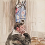 Inscribed 12 - uomo in chiesa and further inscribed (by Emilia Cardona Boldini) no121 atelier Boldini. / Emilia Boldini. - Cardona / 1921 on the verso.