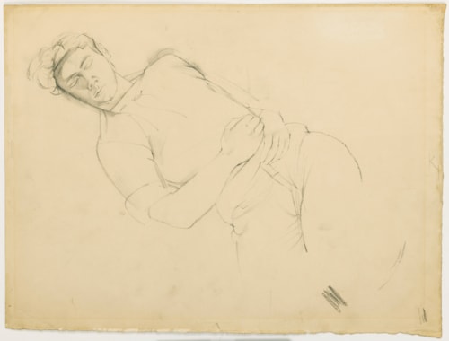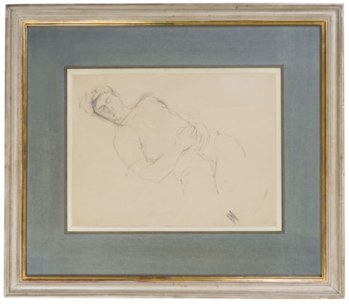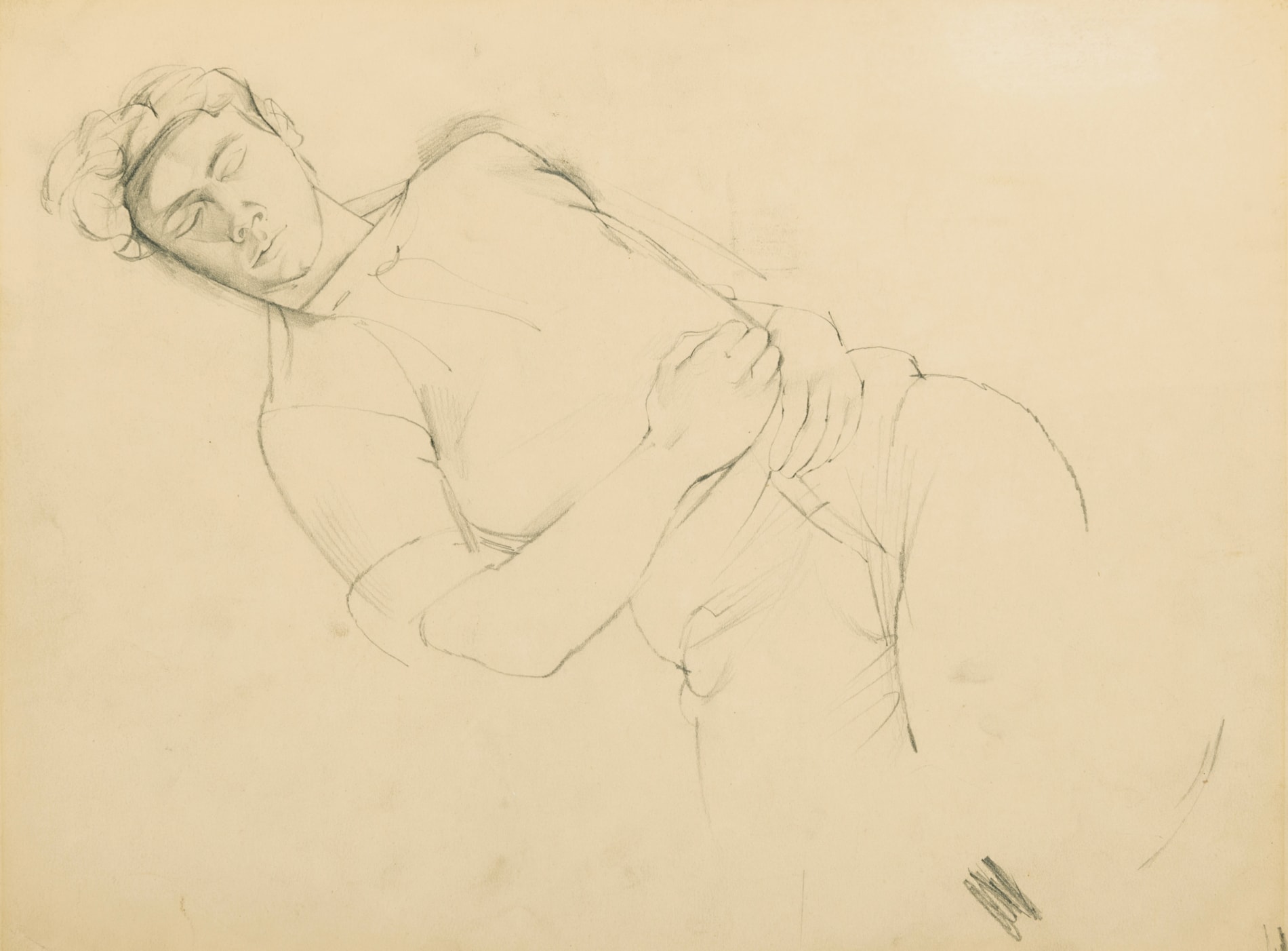 John Minton’s portrait studies in pencil - ‘superb examples at their best of unforced draughtsmanship’, in the words of one friend and critic - are among the finest of his drawings. A pen and ink study of a similar subject, depicting Minton’s friend and lover Kevin Maybury asleep, was sold at auction in London in 2011, while another drawing of the same sitter, also asleep, was in the John Constable collection and recently appeared on the London art market. The intimacy evident in the present sheet suggests that it may likewise depict Maybury, whom Minton met when he was designing stage sets at the Royal Court Theatre in the summer of 1956. An Australian carpenter, Maybury worked in the scenery department at the theatre, and eventually moved in with Minton at his home in Apollo Place in Chelsea. As Minton’s biographer has written, ‘[Maybury] seemed rather amazed to be taken up by this famous painter who drew him into a more exciting social world than he had previously experienced. To some of Minton’s friends it seemed that Kevin was his white hope, the person who was going to keep him off the bottle…The presbyterian streak in Kevin Maybury’s nature aroused in Minton bemused affection.’ Minton made several late drawings of Maybury, as well as a finished portrait in oils, which is now in the Tate. It was Kevin Maybury who discovered the artist’s body after his suicide, having taken an overdose of the barbiturate Tuinal.