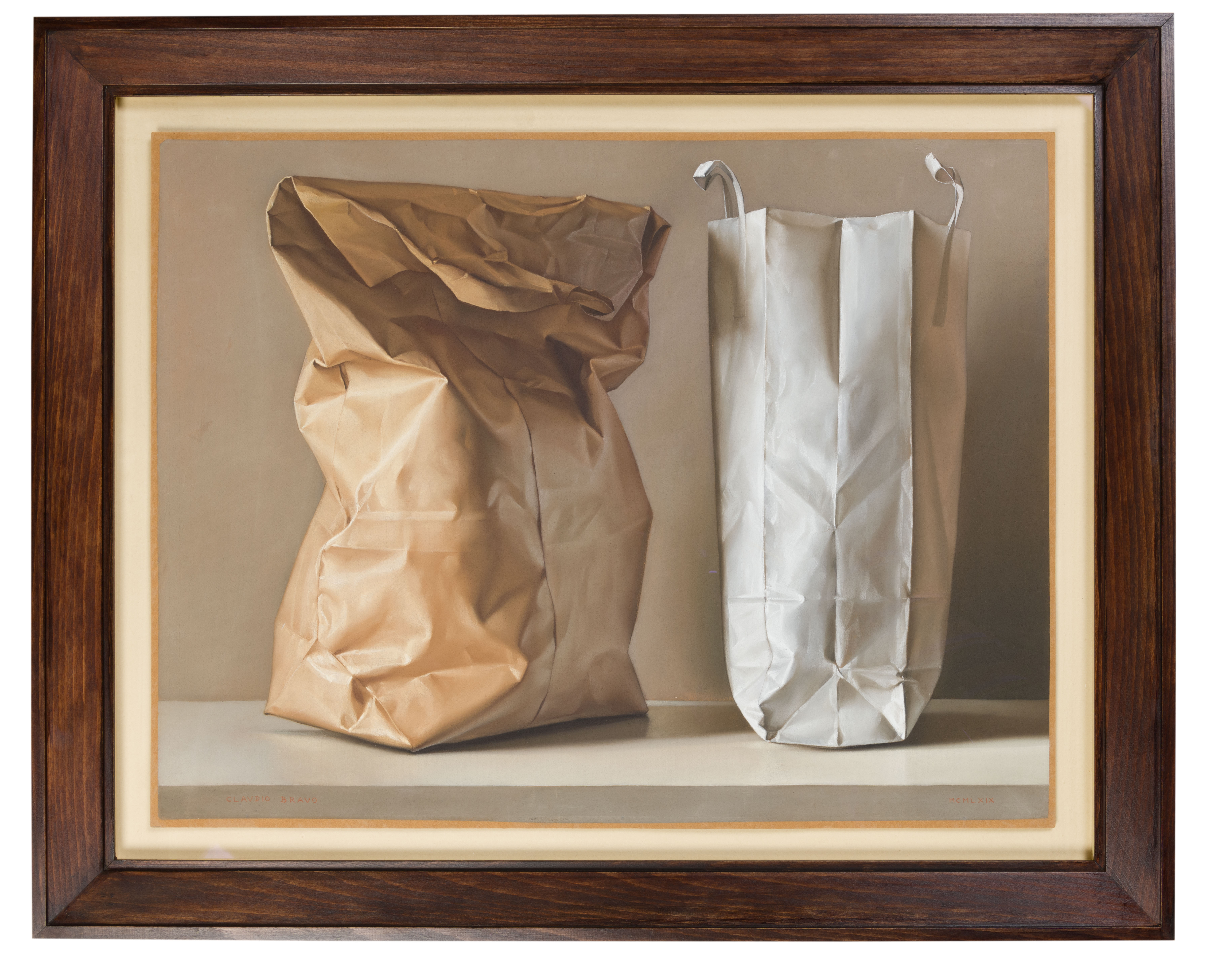 Drawn in 1969, this large pastel still life depicts a motif of upright paper bags found in several of Bravo’s works of this period, such as oil paintings entitled Phantoms of the Supermarket of 1969, Beige Package of 1970 and Blue Package with Ostrich Eggs of 1971, as well as the large drawing Supermarket, dated 1972.