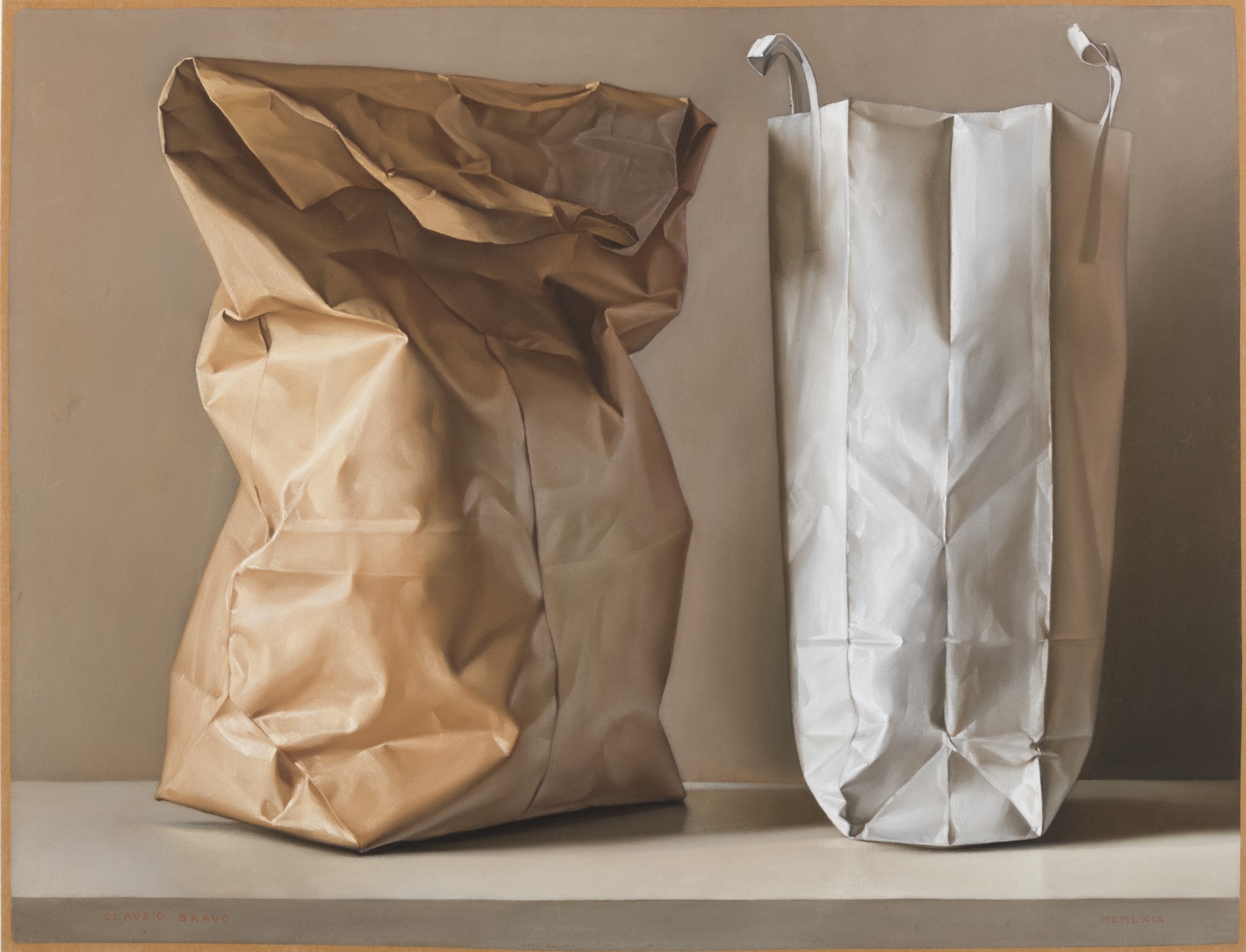 Drawn in 1969, this large pastel still life depicts a motif of upright paper bags found in several of Bravo’s works of this period, such as oil paintings entitled Phantoms of the Supermarket of 1969, Beige Package of 1970 and Blue Package with Ostrich Eggs of 1971, as well as the large drawing Supermarket, dated 1972.