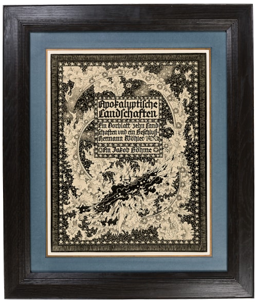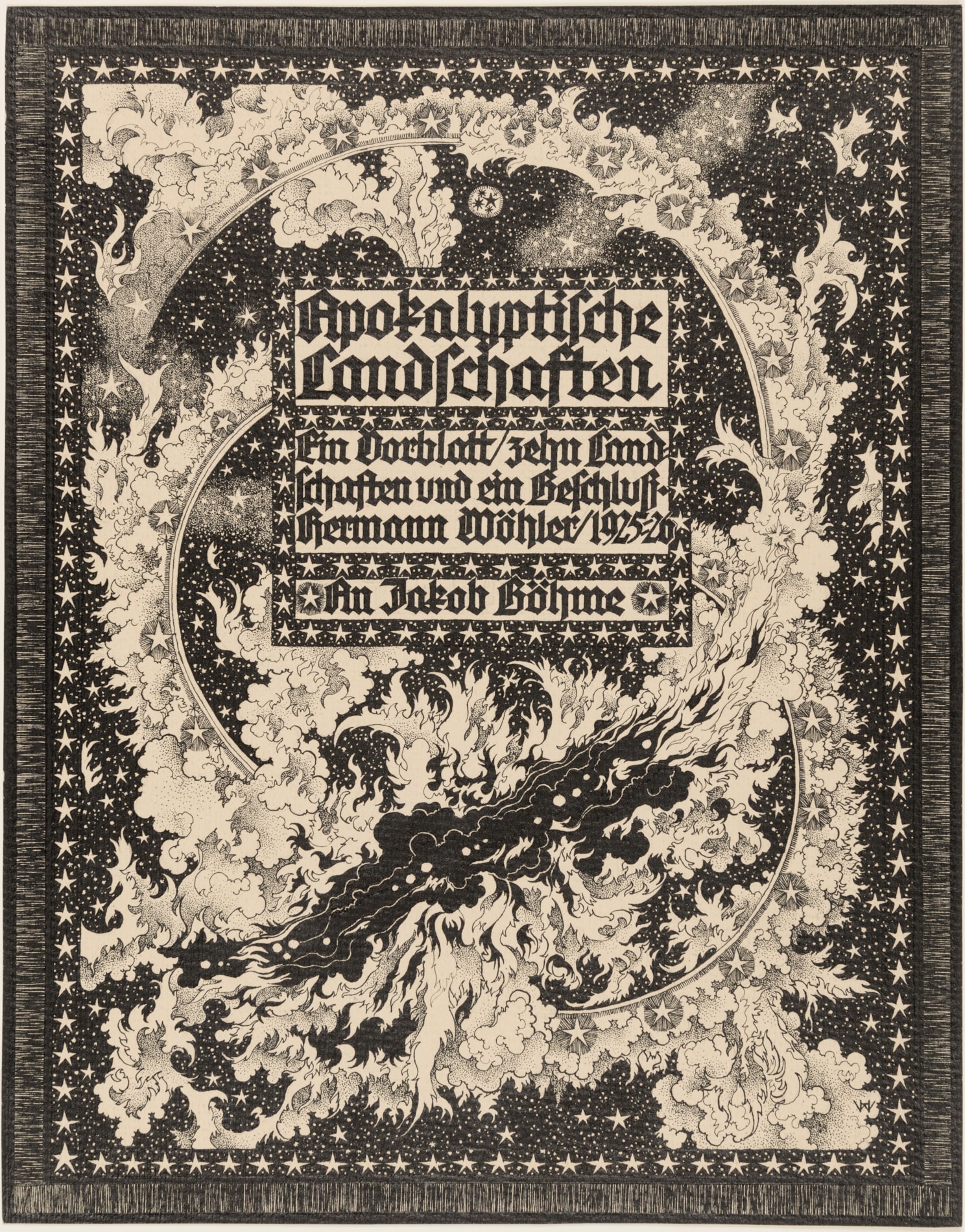 Signed, dated and titled Apokalyptische / Landschaften / Ein Vorblatt/ zehn Land / Schaften und ein Beschluss. / Hermann Wöhler/1925-26 / An Jakob Böhme in the centre.