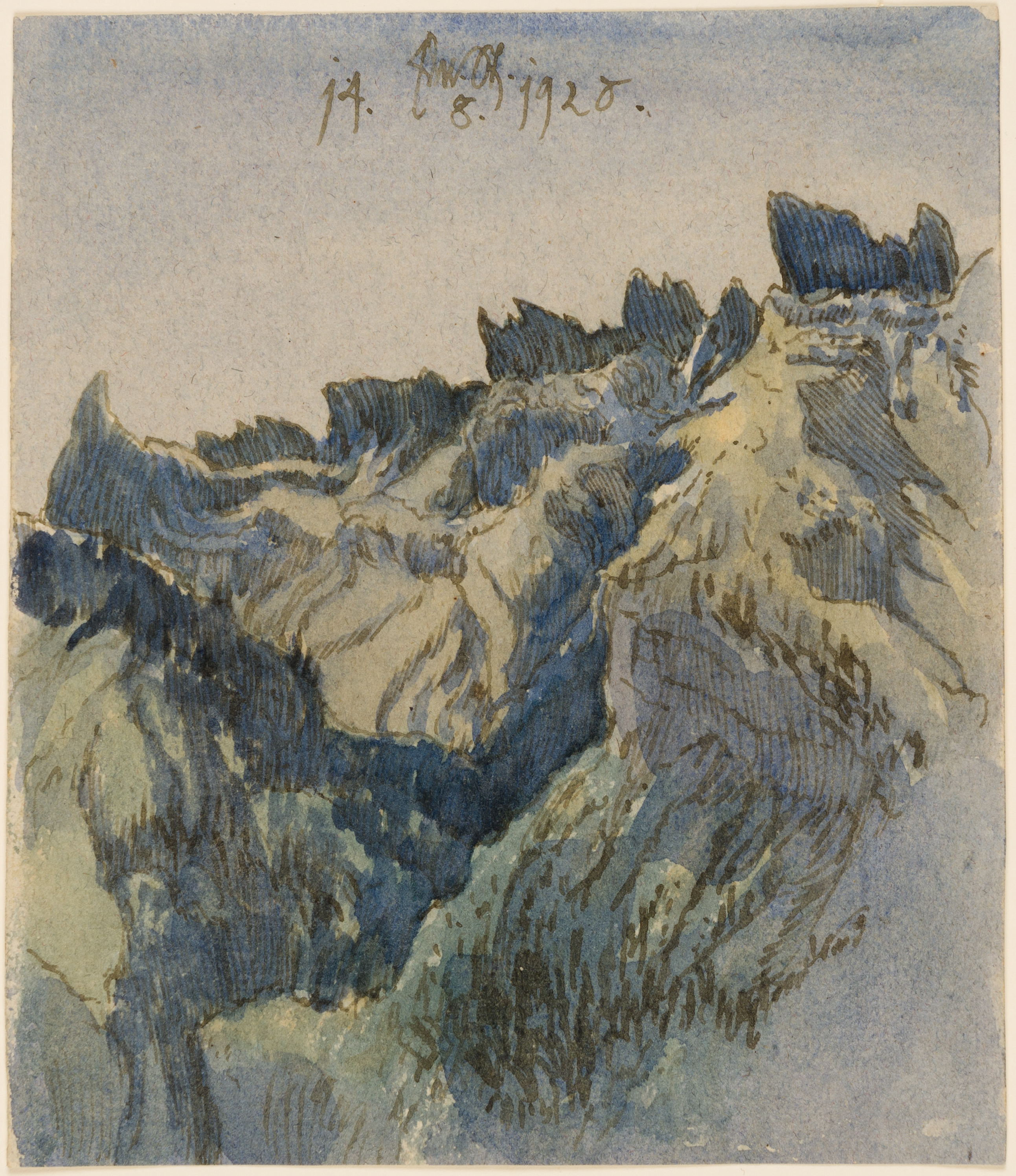 A stylistically comparable drawing by Steppes of a cliff face in the Dolomites is in the collection of the Oberhausmuseum in Passau.