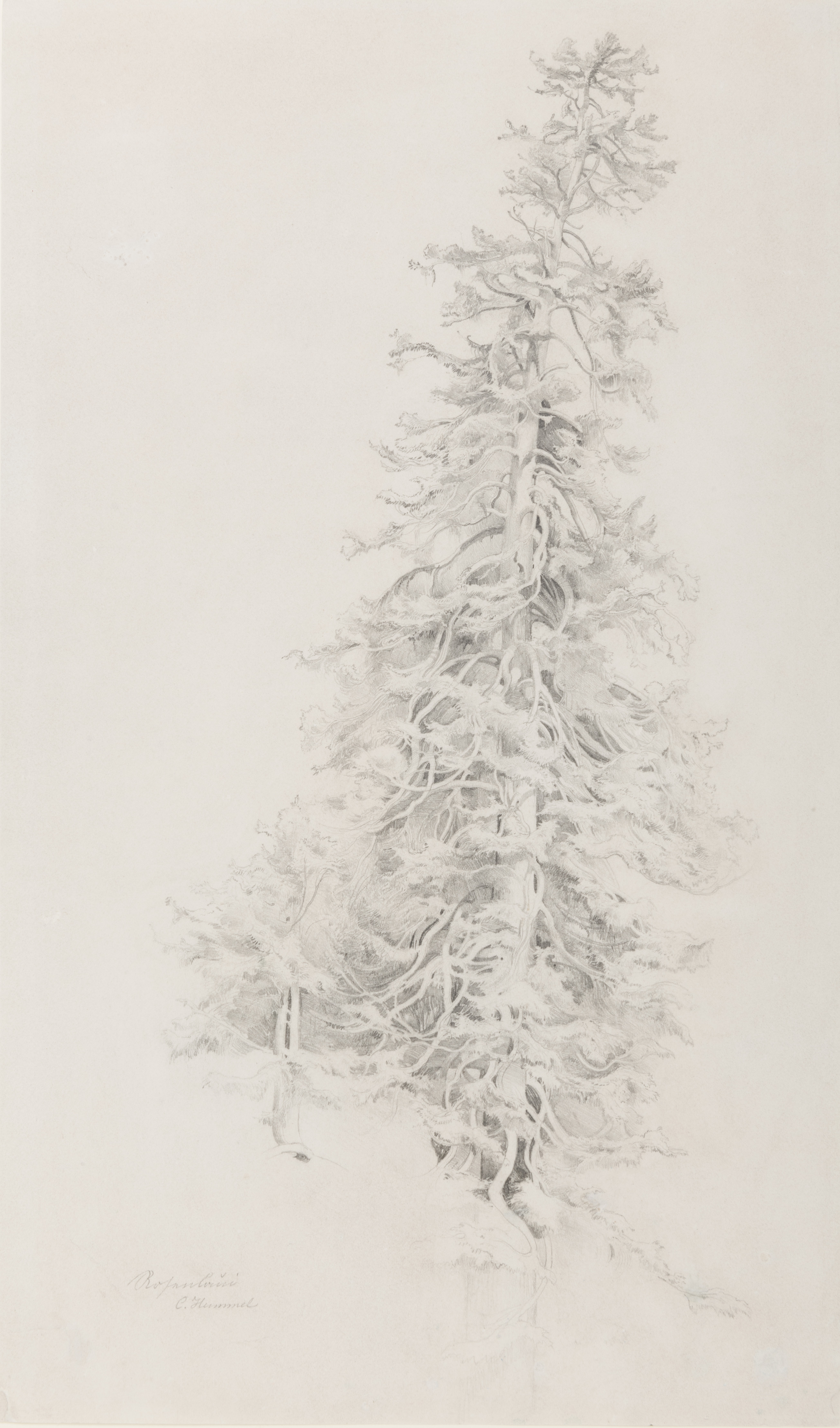 Hummel made numerous careful studies of trees, often of considerable scale, throughout his career. Another large pencil drawing of trees at Rosenlaui was recently on the art market in Germany.