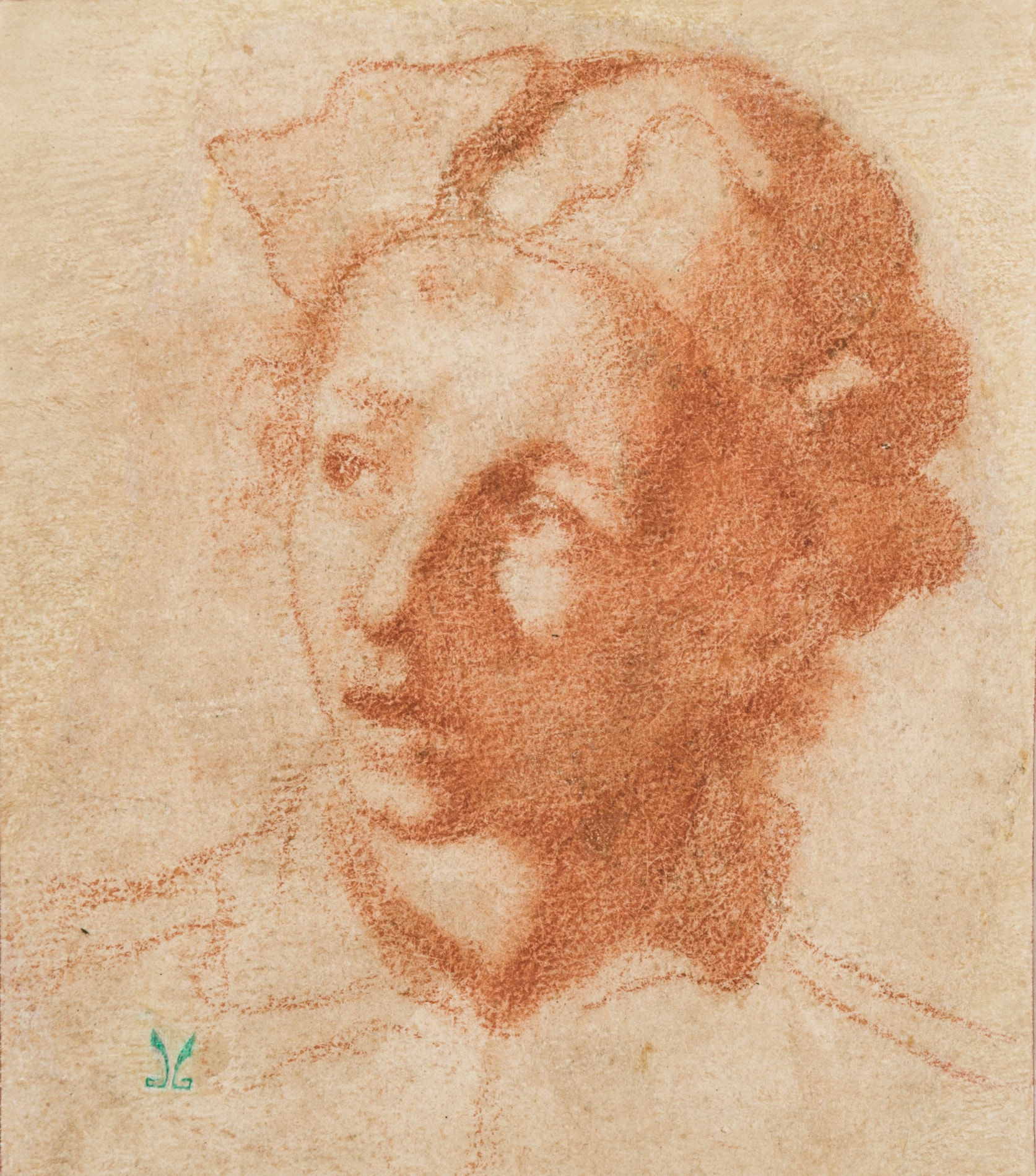 The distinctive cap seen in this small drawing is found in paintings by a number of 17th century Florentine artists, including Cristofano Allori (1577-1621) and Lorenzo Lippi (1606-1665).