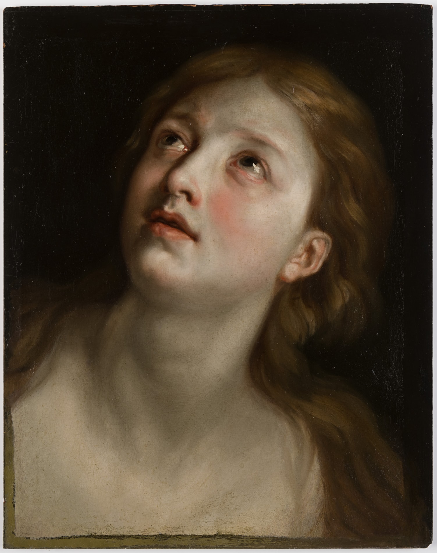Although Mengs completed the actual painting of the altarpiece in around six weeks, he must have produced a number of preparatory studies and sketches for the picture beforehand. Preliminary chalk drawings for the figure and head of the Magdalene in the Noli me tangere altarpiece are today in the Prado in Madrid, the Albertina in Vienna and in a private collection in Malta. A similar oil sketch of this type, preparatory for the head of Christ in the painting, is in the Library at All Souls College in Oxford. As the Mengs scholar Steffi Roettgen has described that oil sketch, in terms equally applicable to this newly-rediscovered study for the head of the Magdalene in the same painting, ‘The fact that so carefully executed a head study was made to the same size as the picture throws a revealing light on the artist’s method of working. Mengs must have made an incredible number of drawings and oil studies for all his larger compositions...The study of the head differs only slightly from the finished painting. However, in expression, brushwork and liveliness it is superior.’