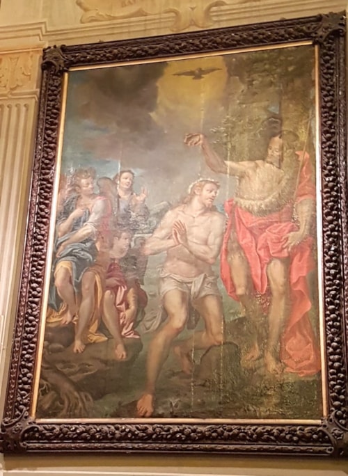 Together with his brother Giovan Pietro, Aurelio Luini had previously frescoed a Baptism of Christ on the dividing wall of the church of San Maurizio al Monastero Maggiore in Milan in 1565. The painting at Cassago Brianza recalls that composition, although it depicts four angels at the left rather than three, and omits God the Father surrounded by angels at the top. Aurelio’s oeuvre of drawings includes various studies of angels - such as the two full-size cartoons of Angels Holding Curtains in the Biblioteca Ambrosiana in Milan - which epitomise his virtuoso skills as one of the most talented draughtsmen of the late Milanese Renaissance.