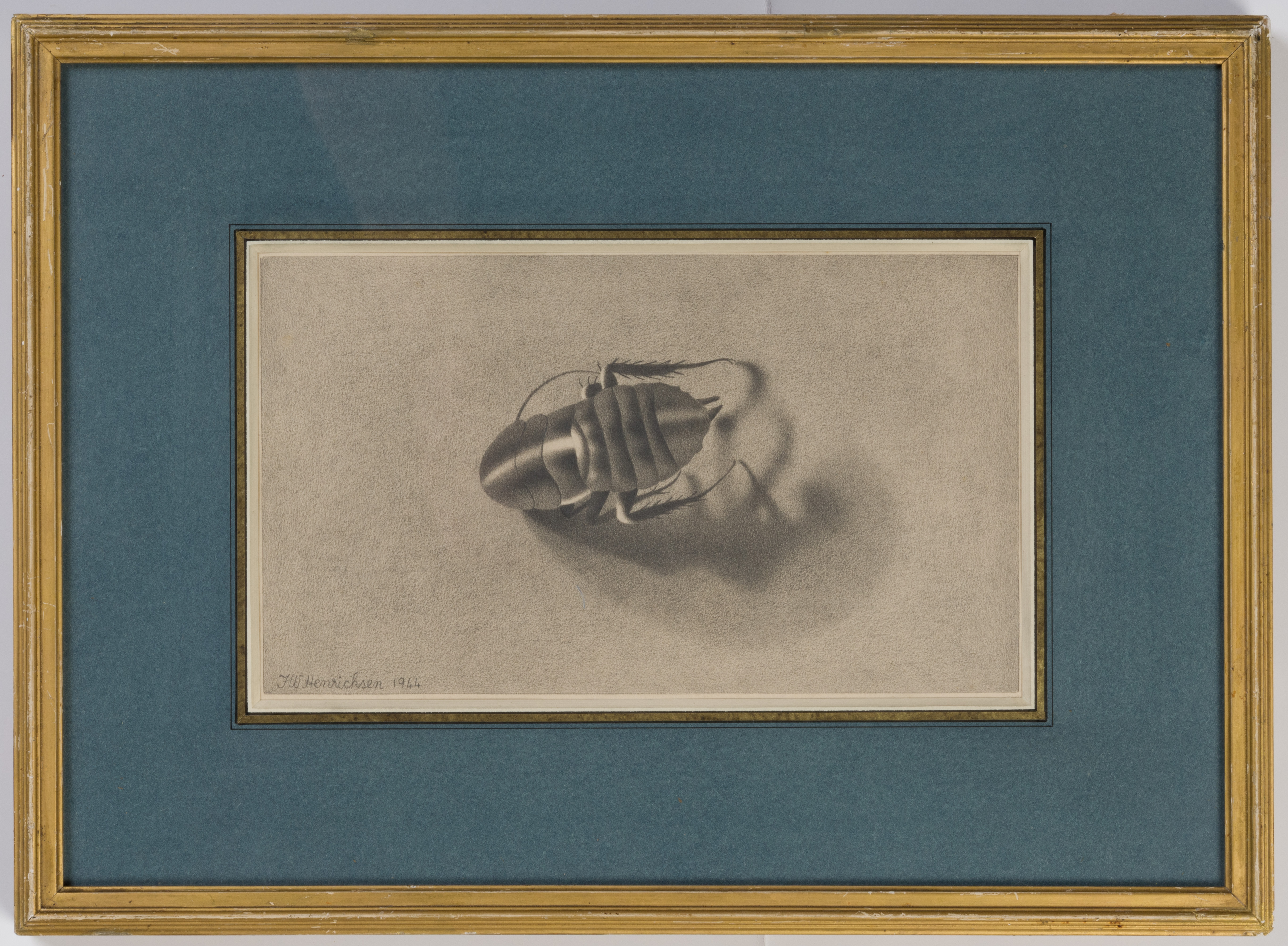 Drawn on the 8th of January 1944, the present sheet is typical of Frank Henricksen’s precise draughtsmanship and masterful shading in pencil, which seems to have been his preferred medium. The drawing is also characteristic of the artist in its close, almost scientific study of an object - in this case, an insect - resulting in a drawing of quiet, yet somewhat eerie, intensity.