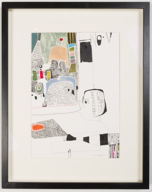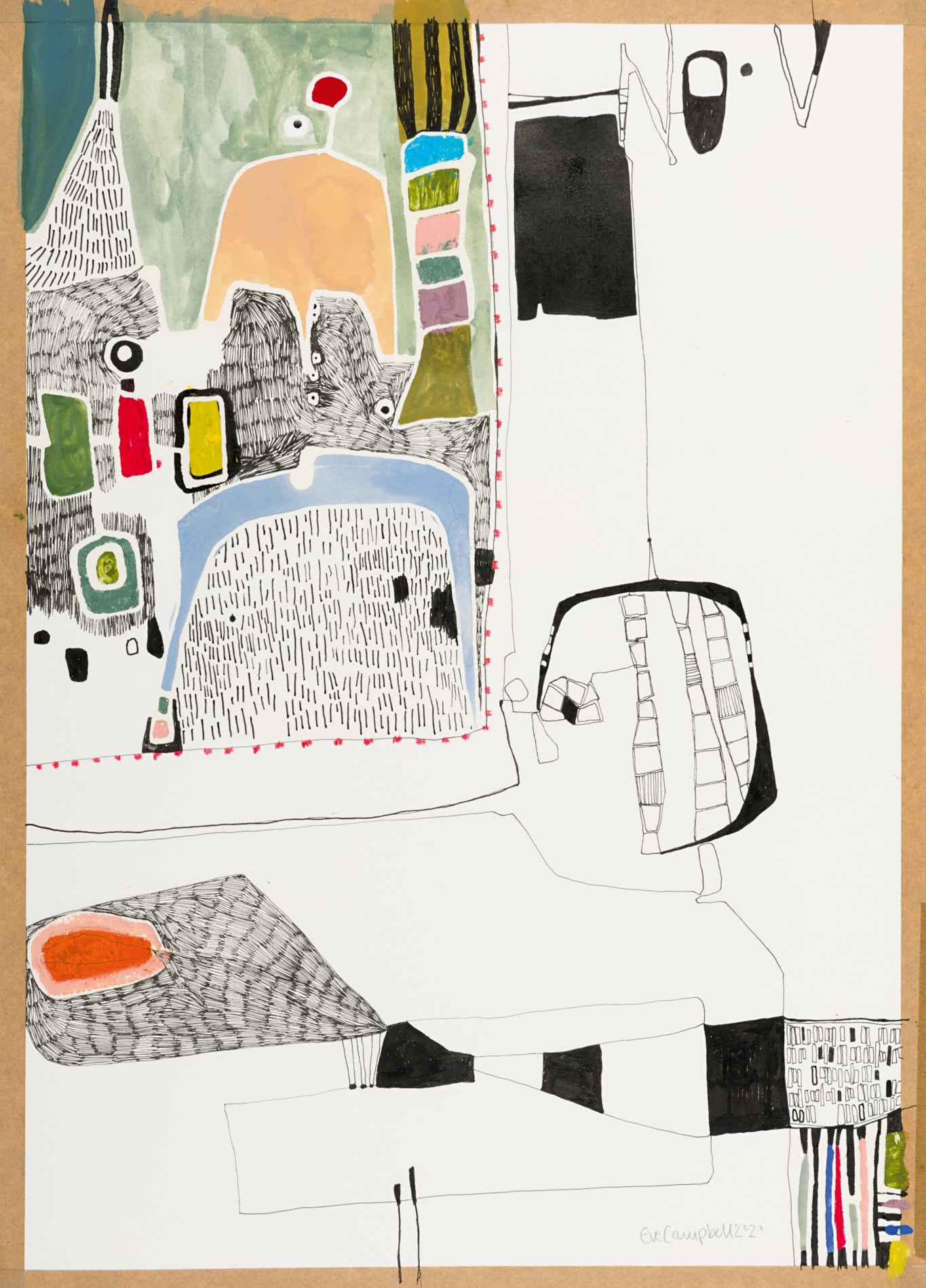 This gouache drawing is part of a series of works on paper entitled Cortili (‘courtyards’ in Italian) that were created by Campbell during the recent pandemic. Unlike much of her work, which is based on the landscape and nature of her native Scotland, the Cortili series evoke the artist’s memories of Venice, where a cortile, or inside courtyard - often with a well in the centre - is found within a number of larger buildings, notably in the Doge’s Palace. Some of the Cortili drawings were developed into larger printed wall hangings.
