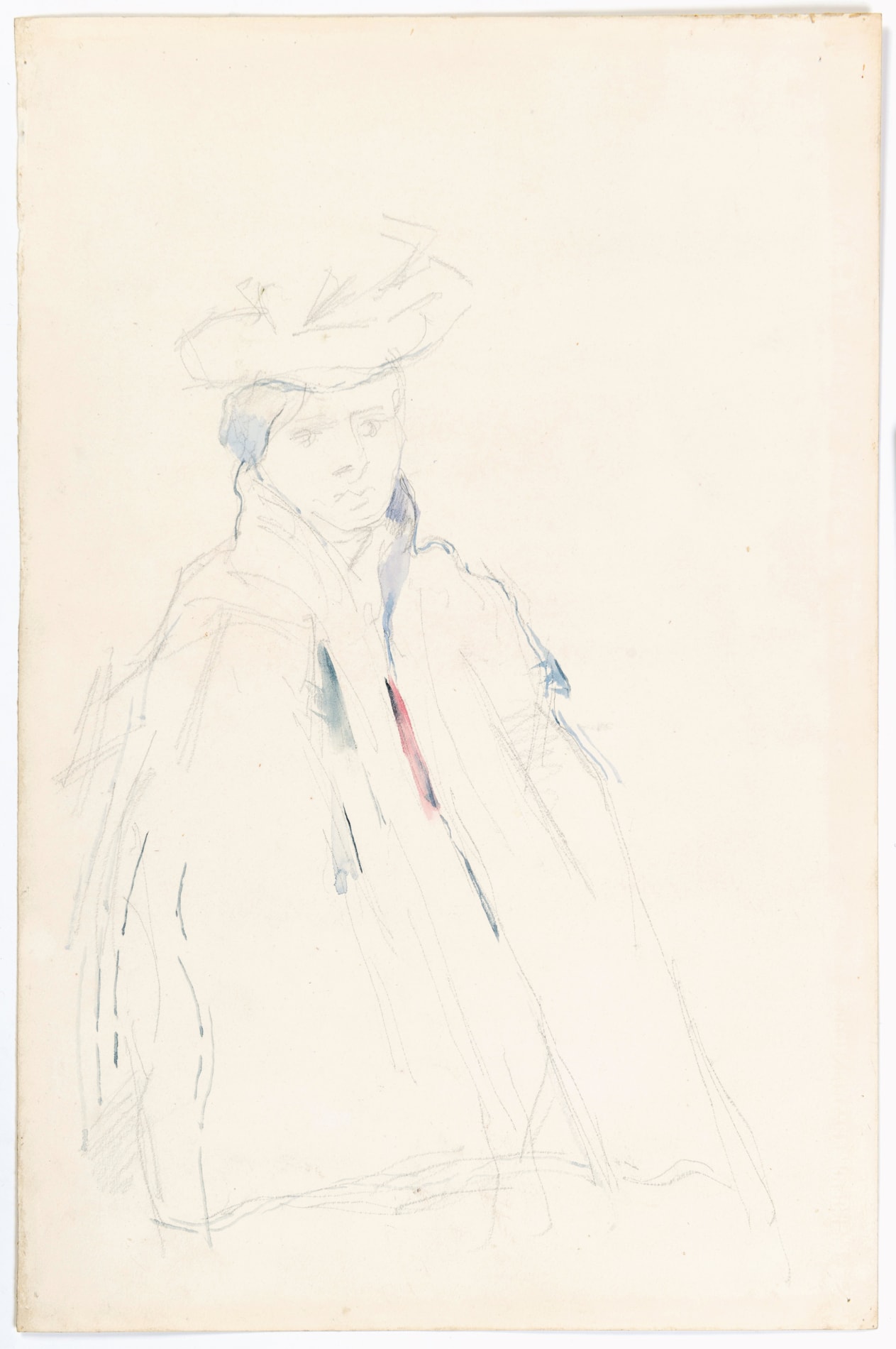 The present sheet was one of a group of 187 watercolours acquired, for the sum of 62,000 francs, from Cézanne’s son in March 1907, less than six months after the artist’s death, by the art dealers Ambroise Vollard and Gaston and Josse Bernheim-Jeune. Later that same year the Bernheim-Jeune Gallery mounted the first large public exhibition of Cézanne’s watercolours in their Paris gallery. Femme à la mante was included in Bernheim-Jeune’s second exhibition of Cézanne watercolours two years later, in May 1909, and was later acquired for stock by the Berlin dealer Paul Cassirer, who, like the Bernheim-Jeunes in France, did much to promote the collecting of Cézanne’s watercolours in Germany.