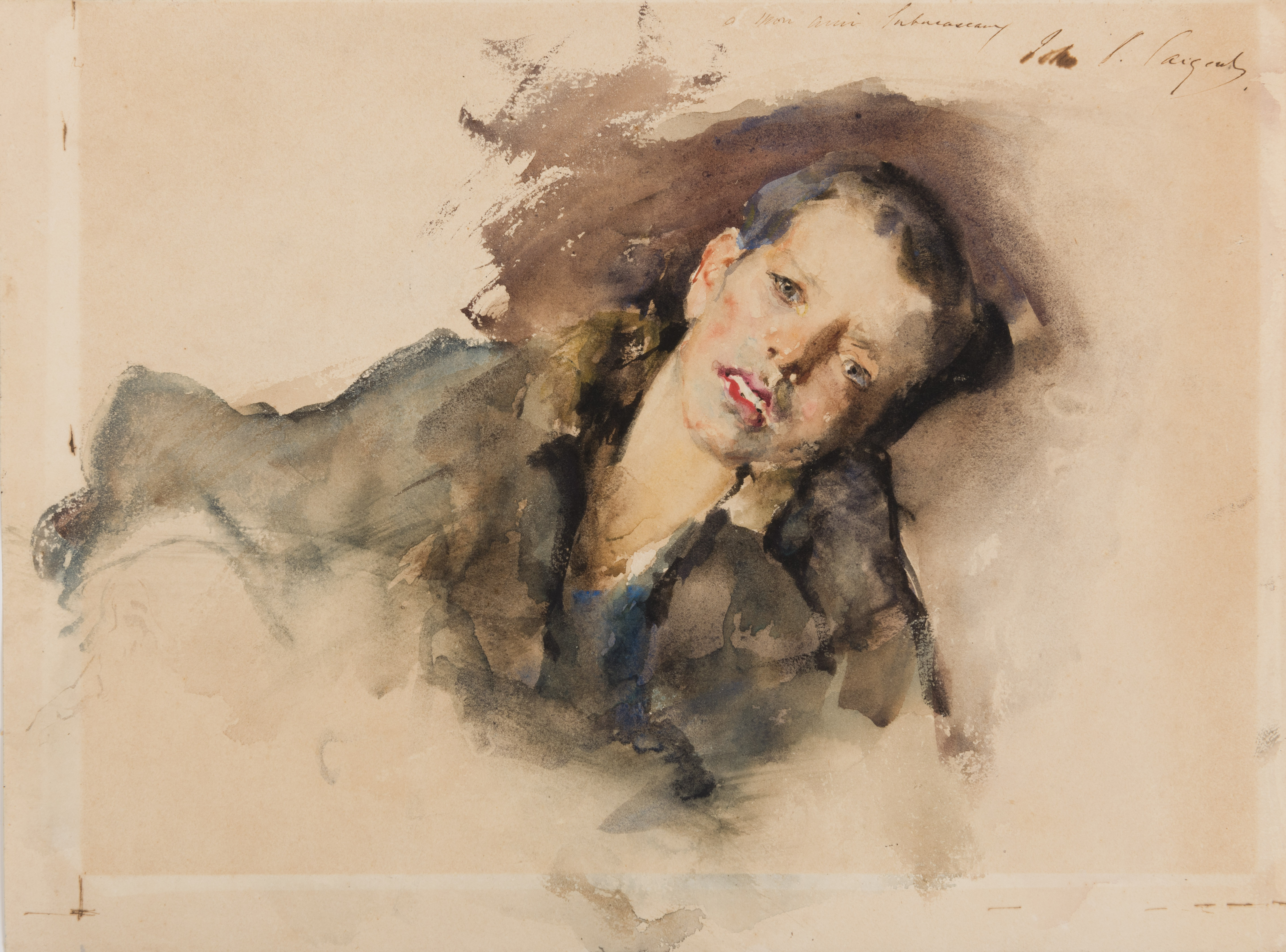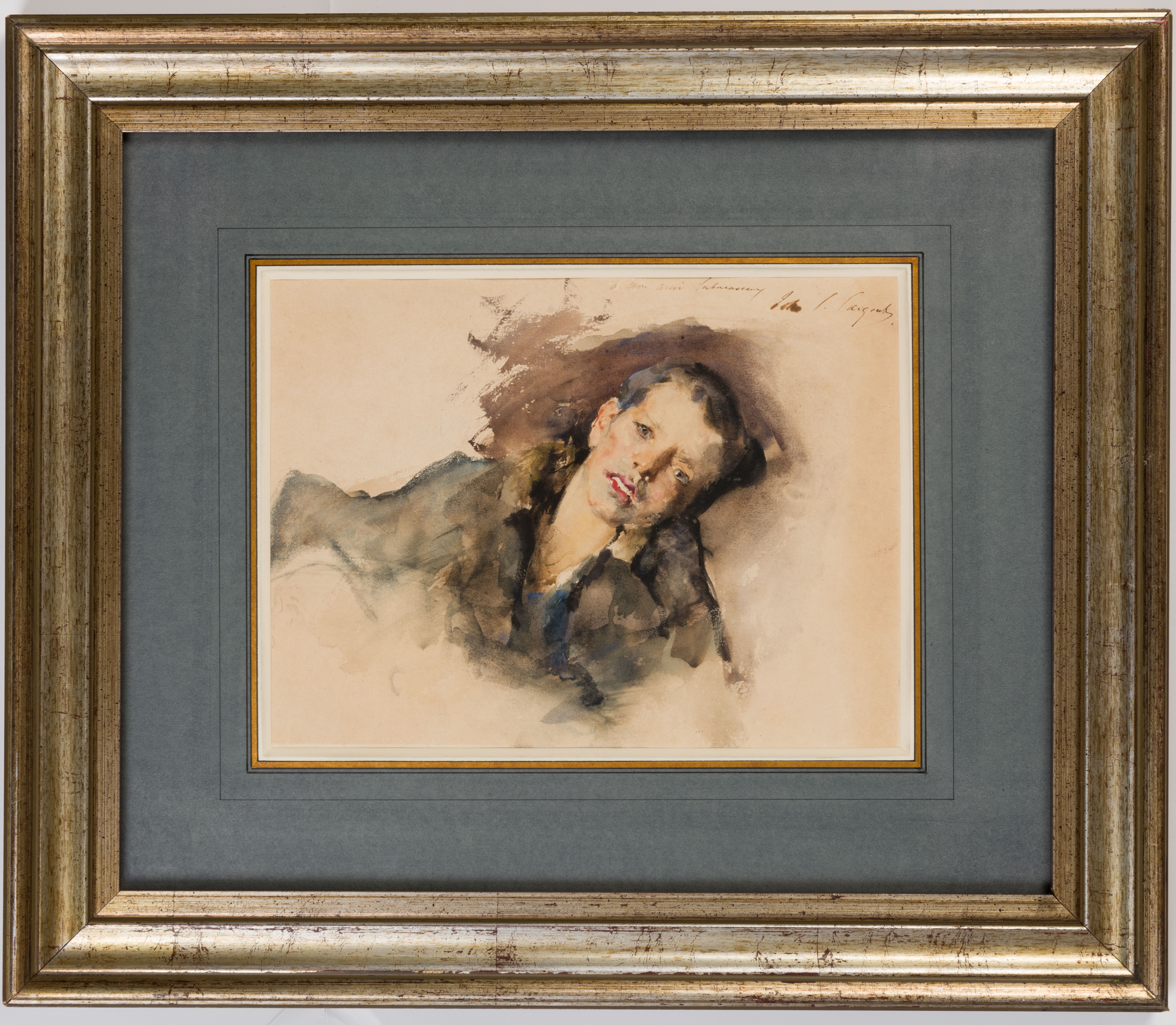 As Richard Ormond and Elaine Kilmurray note of the present sheet, ‘This intimate study of a young boy resting, with lips parted, is similar to other heads of Venetian models…Assuming that Venice is the location, it is probable that the boy is a local inhabitant rather than the son of one of the artist’s friends.’