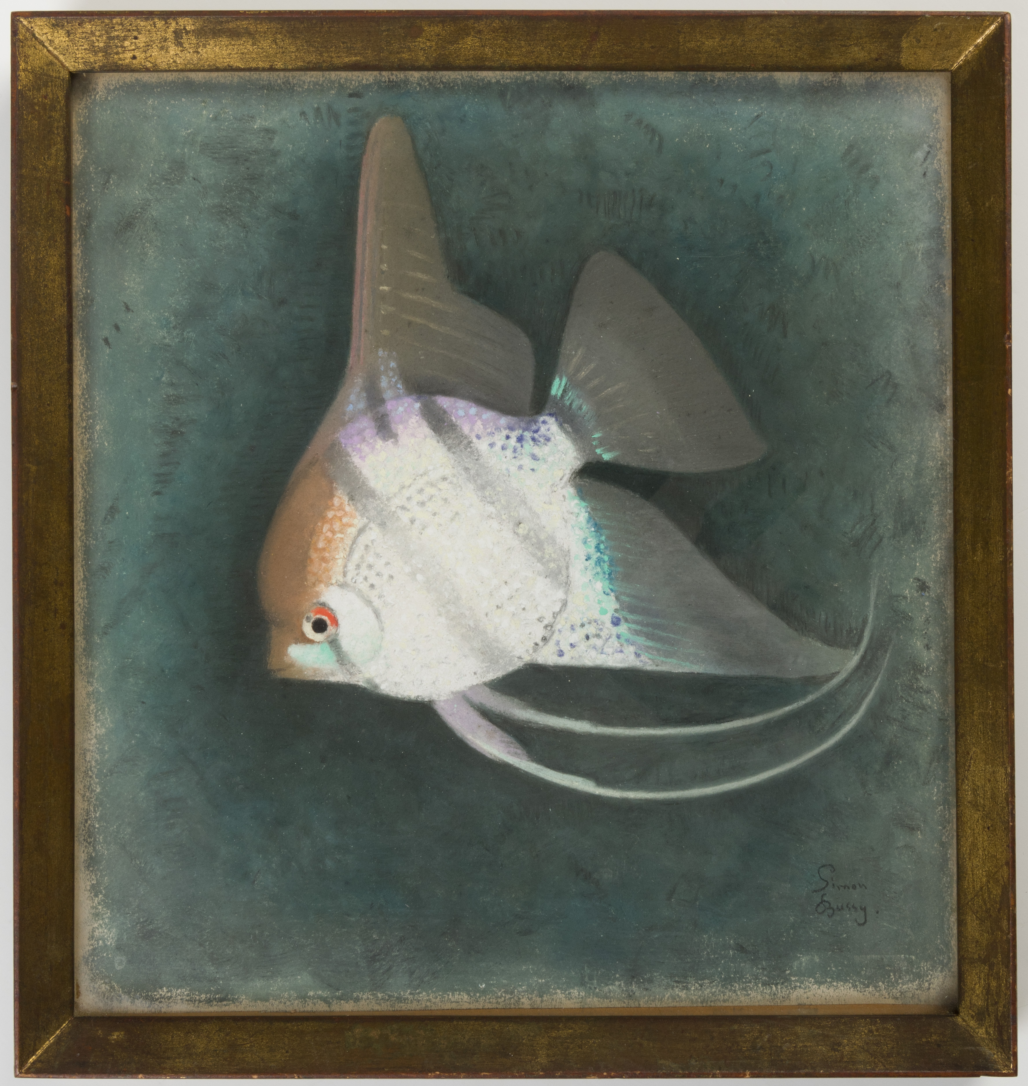 Most of Bussy’s pastel drawings of fish seem to have been made at the zoo at Vincennes, since he was unable to find adequate lighting at the London Zoo in order to make studies of fish there. As the French writer André Gide noted of the artist, ‘what now attracts him more and more rather than the likenesses of human beings are the likenesses of birds, fishes, insects. He spends most of his time at the London Zoo or in the Vincennes park or aquarium; then he shuts himself up with his collection of studies and by a kind of patient and lover-like distillation evolves from them his paintings. In face of each living form he seems to be asking, ‘And you there! What have you to tell me?” And the mygale, the crab, the scorpion become motionless and give up their secrets…There are some of Simon Bussy’s fishes whose stupidity fascinates me (as Flaubert’s St. Anthony said of the catoblepas) and at whom I can stand gazing in long drawn-out contemplation. And yet, with all its ineptness this matter is alive and a perfect organism.’