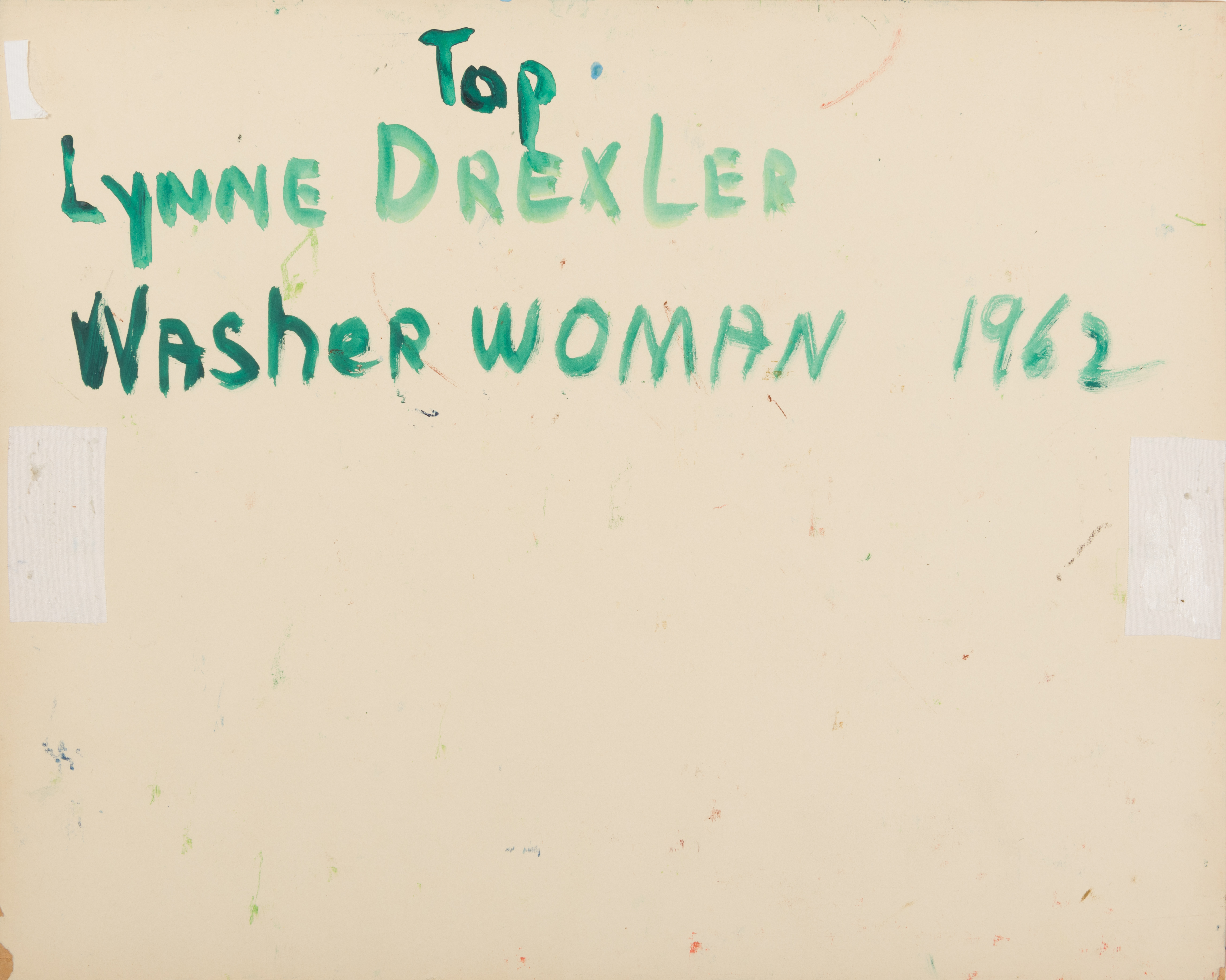 Signed, inscribed, titled and dated Top / LYNNE DREXLER / Washer woman 1962 in green ink on the verso.