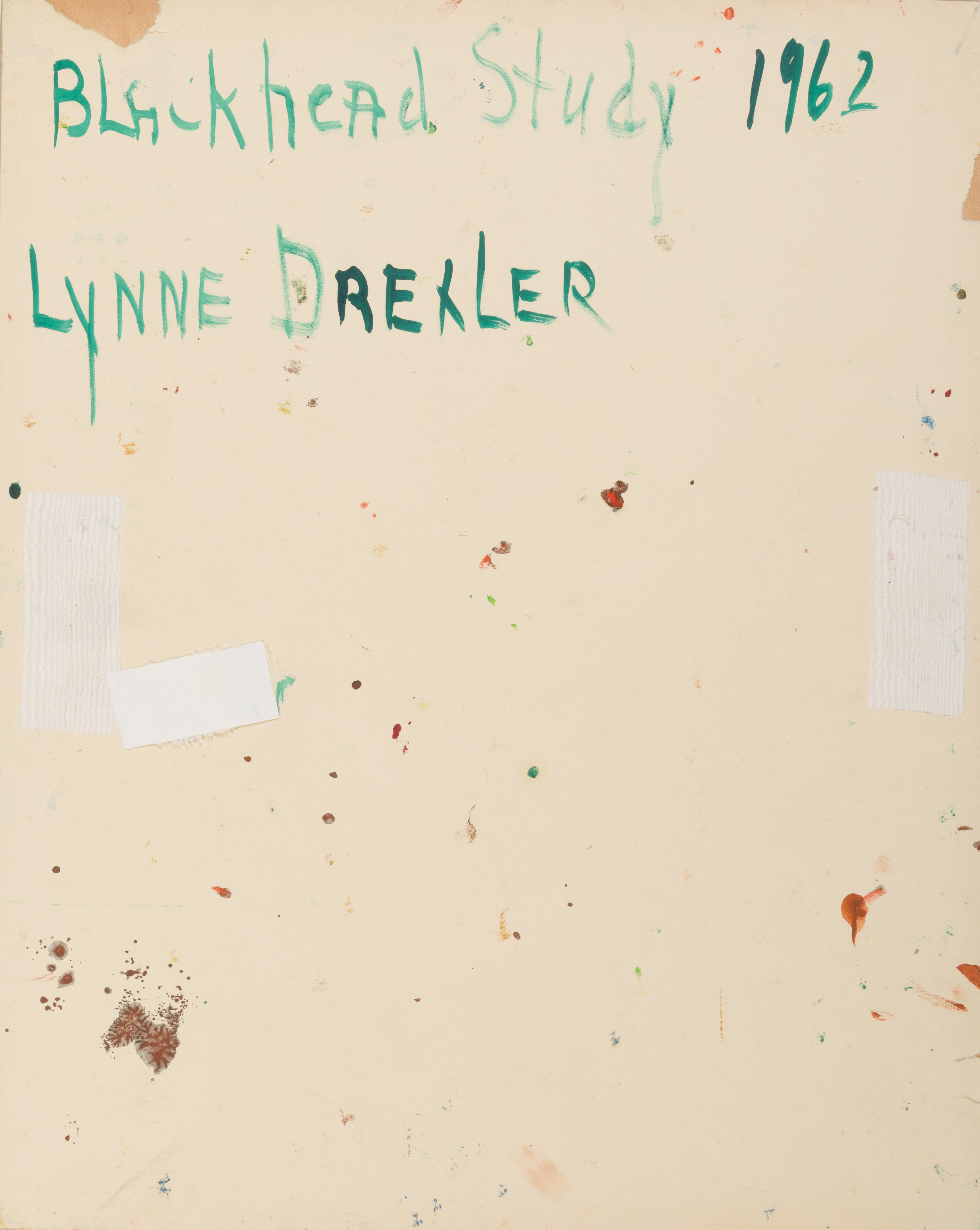 Signed, titled and dated Blackhead Study 1962 / LYNNE DREXLER in green ink on the verso.